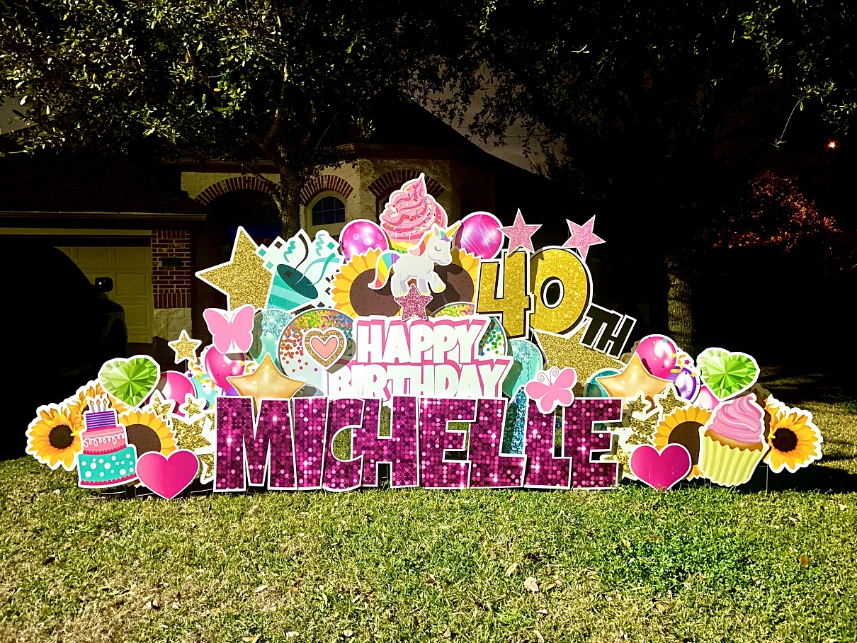 My name is Lisa Reyes, I am the founder/owner of Lawn Greetings – Fort Bend. I am an avid volunteer, wife, mom, dental profession by day and a yard carder by night! Yard carding is not for the faint of heart, believe me it is so much more to it than just sticking stakes in the ground. It requires time, effort, and some serious creativity. I never do the same card twice, each sign is created for the individual it was ordered for. I try to tell a story in my designs, I want the receiver to know that card was created just for them, with colors and imagines that tell about who they are. I’ve always taken the time to speak to my customers, and yes as easy as it would be to create a form and make it all automated I enjoy the engagement part. I enjoy the stories about their 95 year grandma, or how their friend is ending Chemo, or how proud a parent is that their child is going to state for sports. Approaching 3 years in business I have set up over 2000 signs and I take pride in knowing I have been the direct point of contact for each of them as they explain to me how they want to celebrate someone they love, being mindful to do my best to create the vision of what they had in mind in the final product.