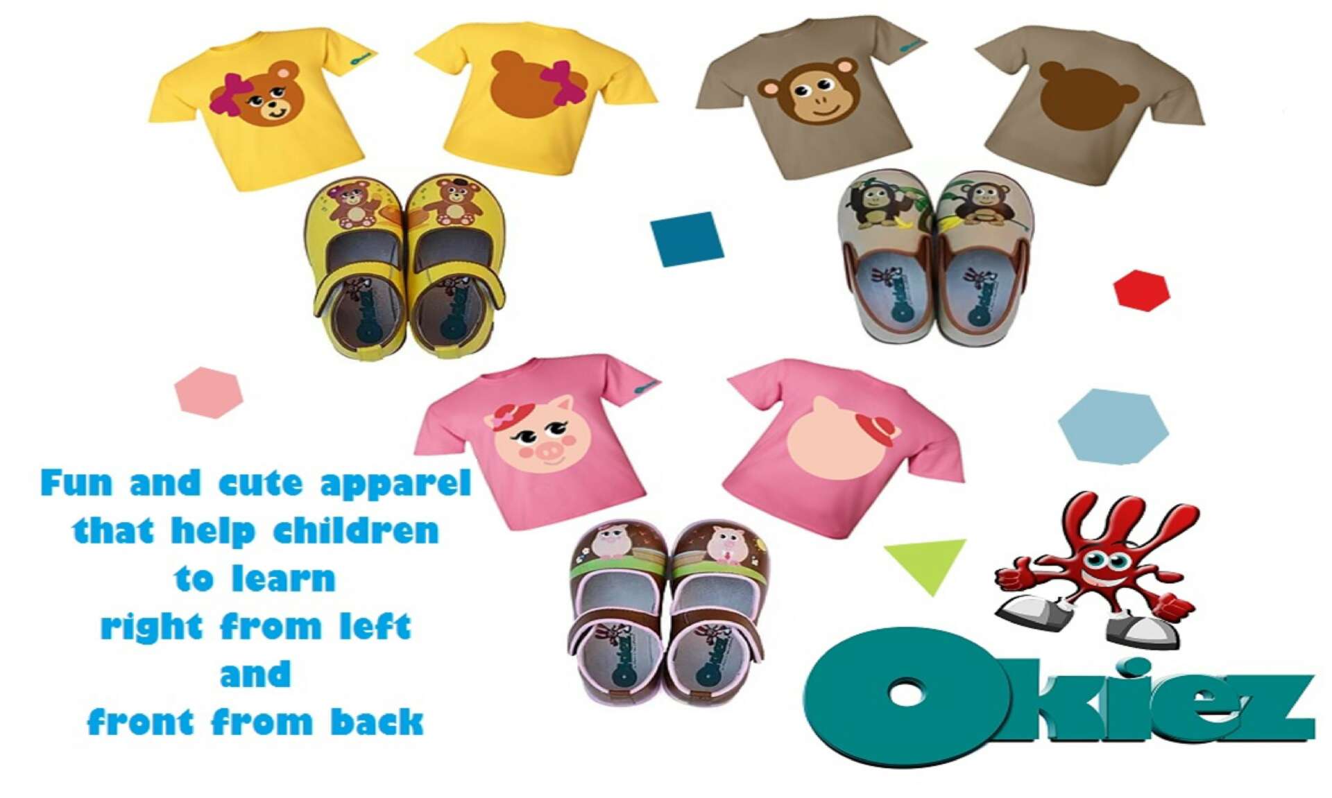 Okiez is apparel that empower children to dress themselves using designs that help children easily know right front left and front from back