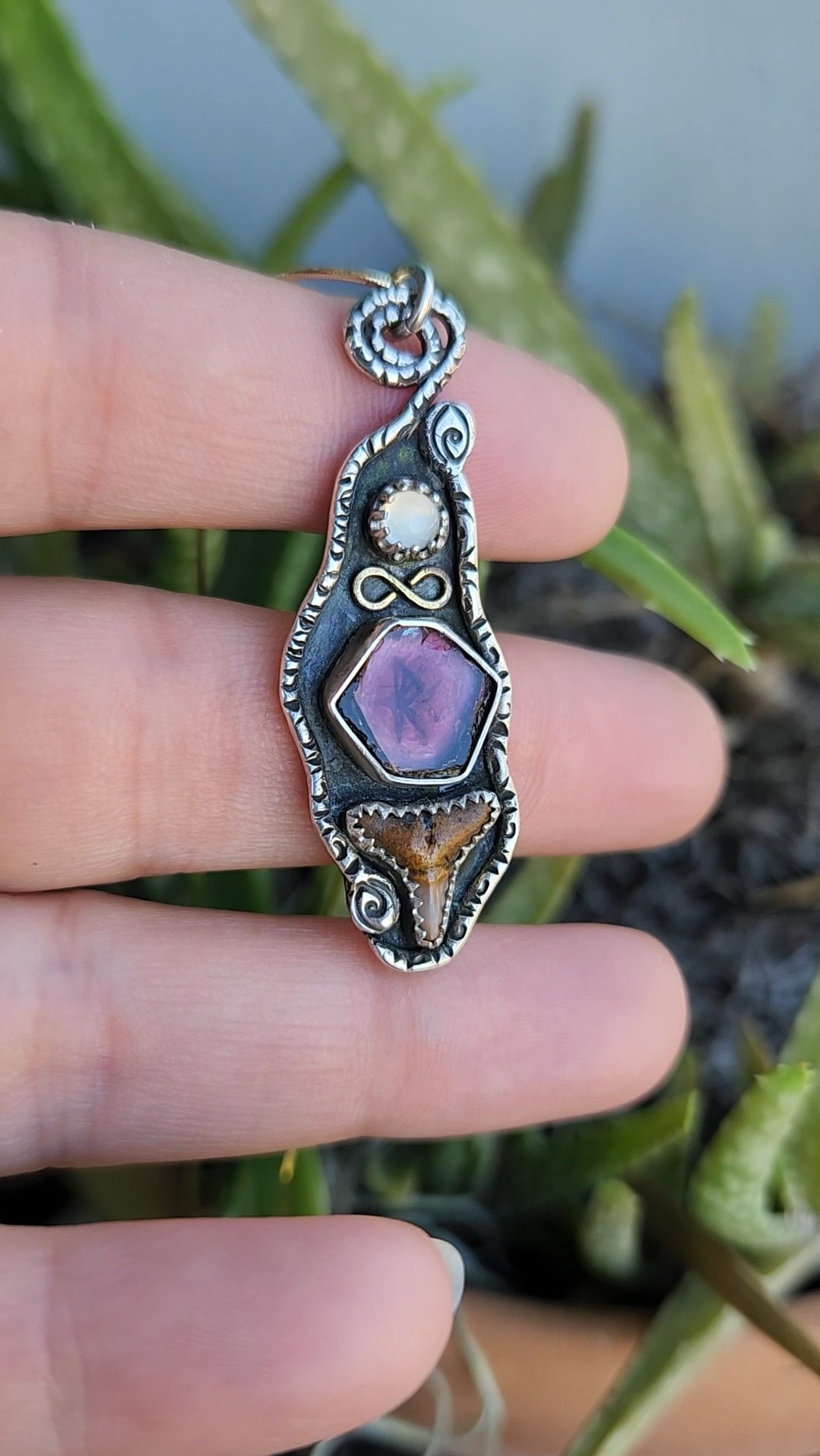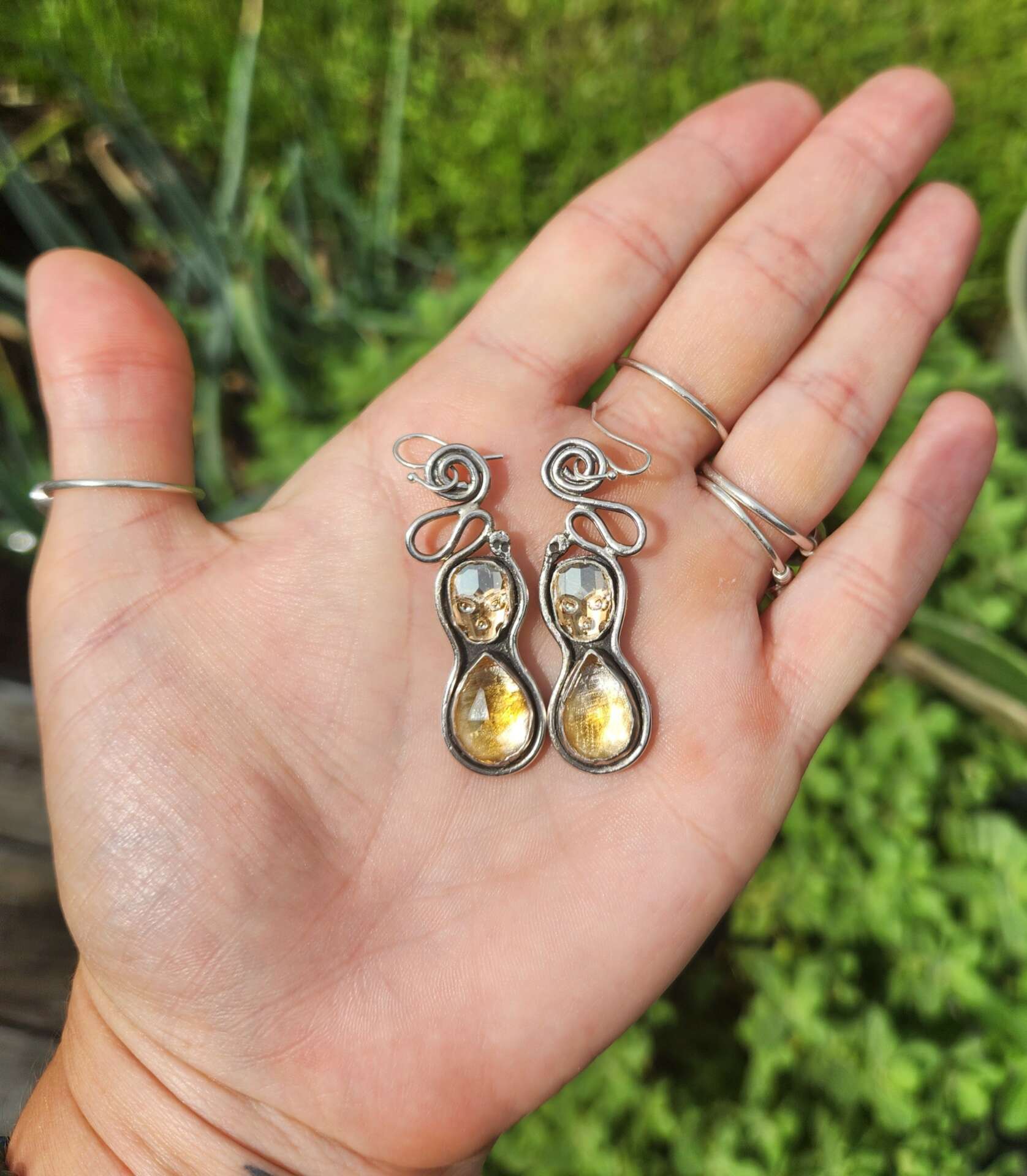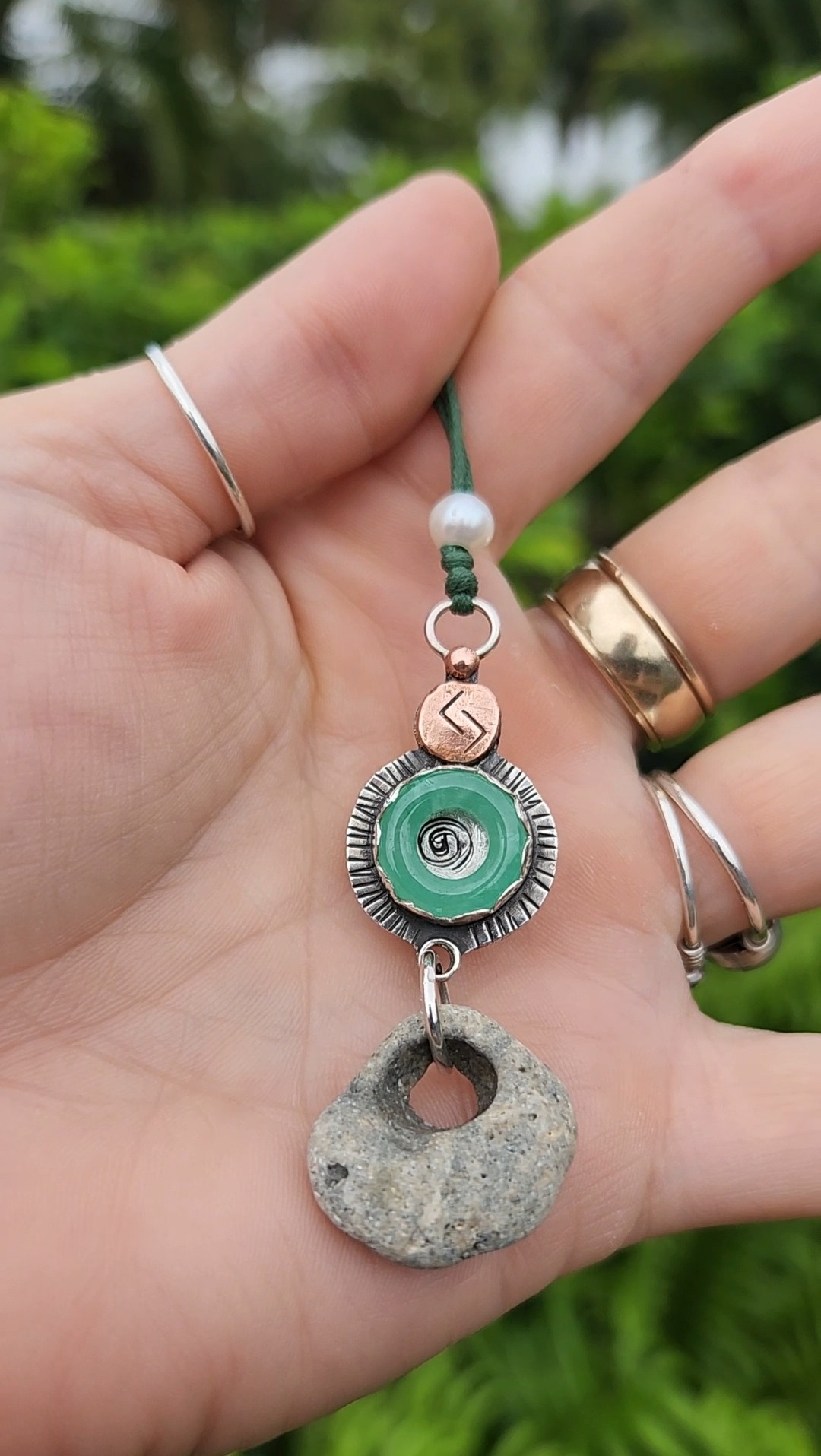 Finding freedom in expressing my creativity has been key to my growth as a person. Creating art and jewelry for myself, and then feeling confident enough and offering these works to my fellow people has been a reward in itself. Loving my own works thru their evolutions has been a hard step to take. I want my jewelry to be loved by others as much as I love it, and I pride myself on creating that kind of energy in the world when others find their own personal power when wearing my talismans.