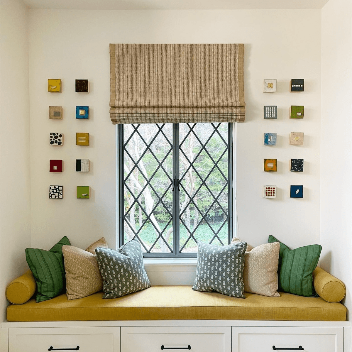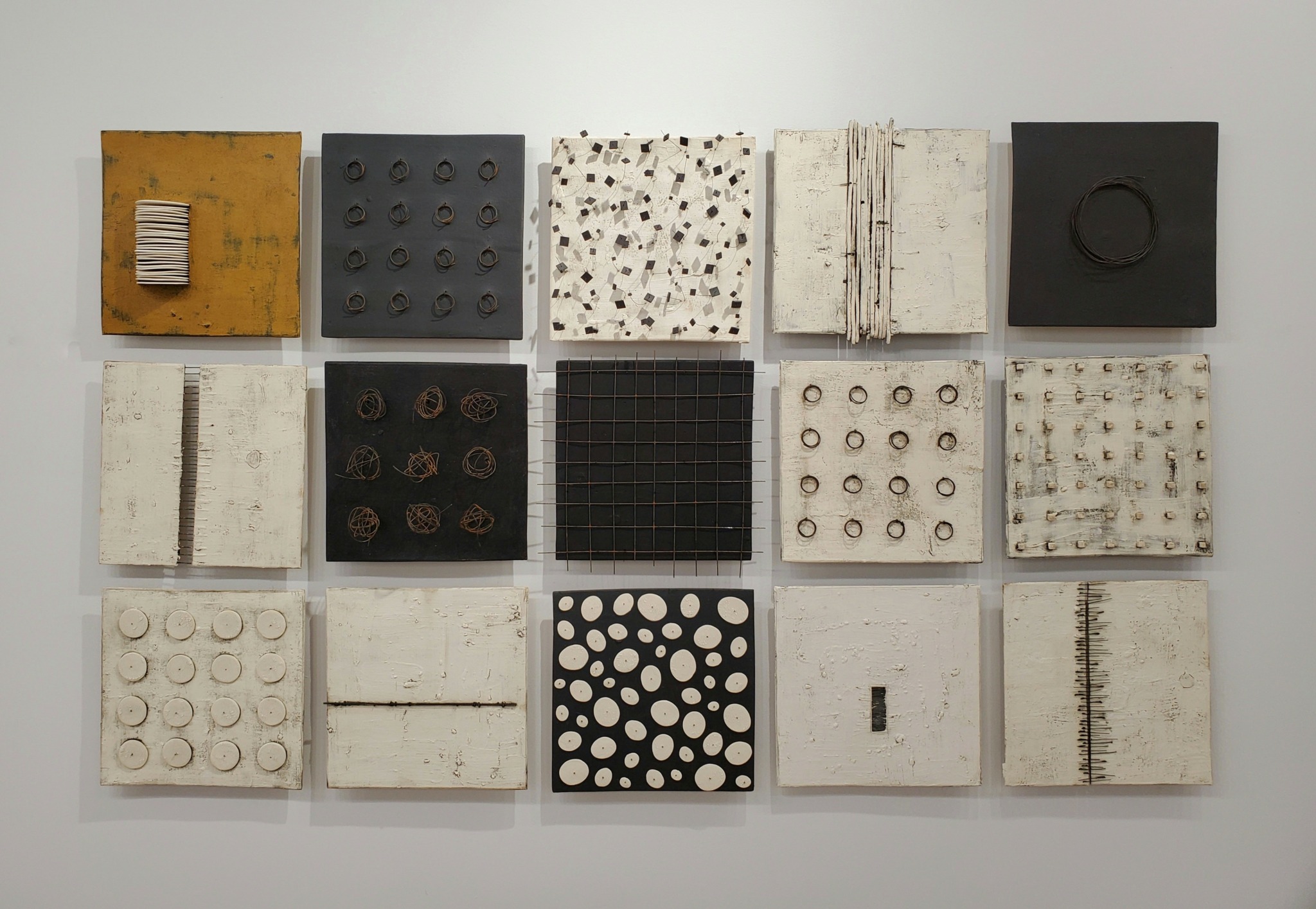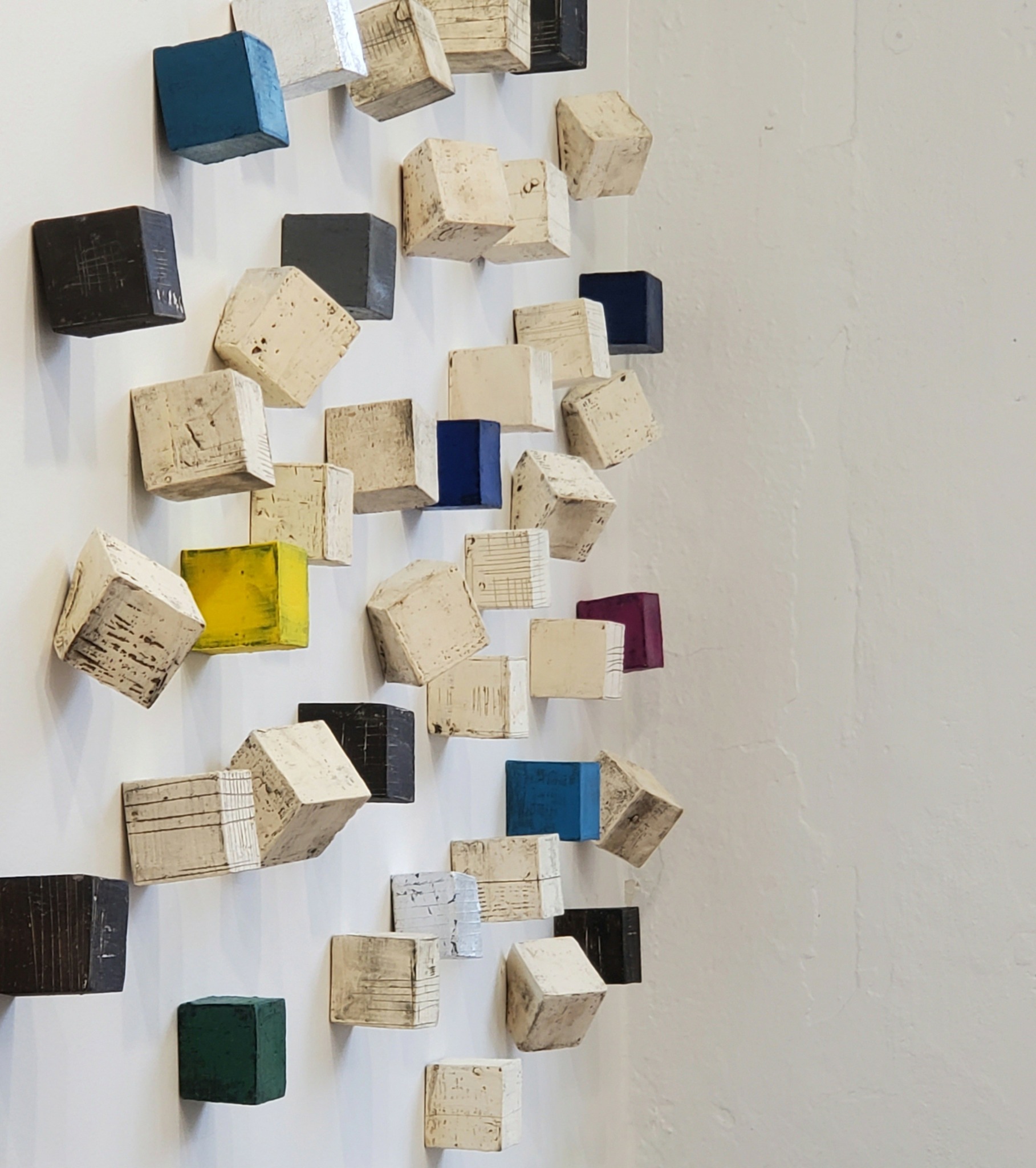 I work with designers, art consultants, architects and individuals, providing proposals for homes, offices, commercial spaces. Installations are comprised of component pieces that I put together to form strong, cohesive compositions. Because my work is modular, installations are limited in size only by the site wall. I work with excellent art installers or can provide hanging templates for clients.