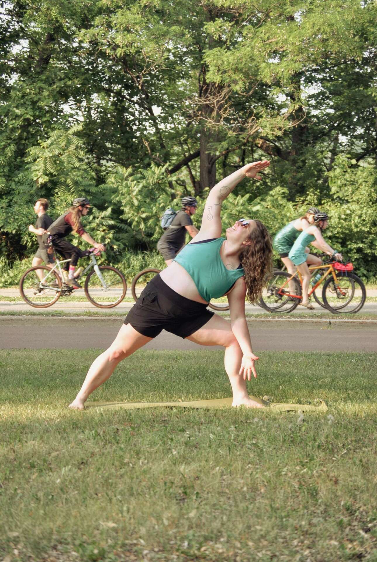 Being a self-starter who thinks outside the box has built my reputation within the wellness and yoga world. The “if it ain’t broke, don’t fix it” model has a place, but that place is not inside of this field. Yoga stays relevant because the ancient spiritual components of it can yield wisdom for the struggles of every era. Not to mention that the human body, though lifestyle changes over time, stays mostly the same. Yoga postures discovered and codified hundreds of years ago are still helpful for people today, and we can keep the integrity of those old teachings while finding new ways to reach people. Some yoga teachers shy away from being friends with their students outside of class; I find making friends through yoga enriches my life and my social circles. The time of the studio being the hub for yoga has passed, we are busy taking yoga into homes, to the park, to farmer’s markets, to art studios, etc. It isn’t all about the location – the magic can happen anywhere, even in the privacy of our own kitchens or bedrooms – but taking yoga to the people instead of expecting folks to come find it in-studio has led me to the place I have now in the yoga world.