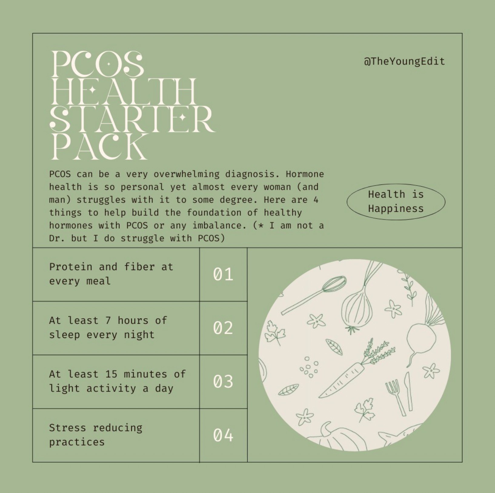 I have Hashimotos and PCOS which are honestly super common in women. Both of these issues aren’t super-well talked about, so opening that door for discourse has been super important to me. Both issues are also underfunded and under researched so most advice for people struggling is anecdotal, which means If I can share just one thing that has helped me feel better, I want others to know and feel better too.
