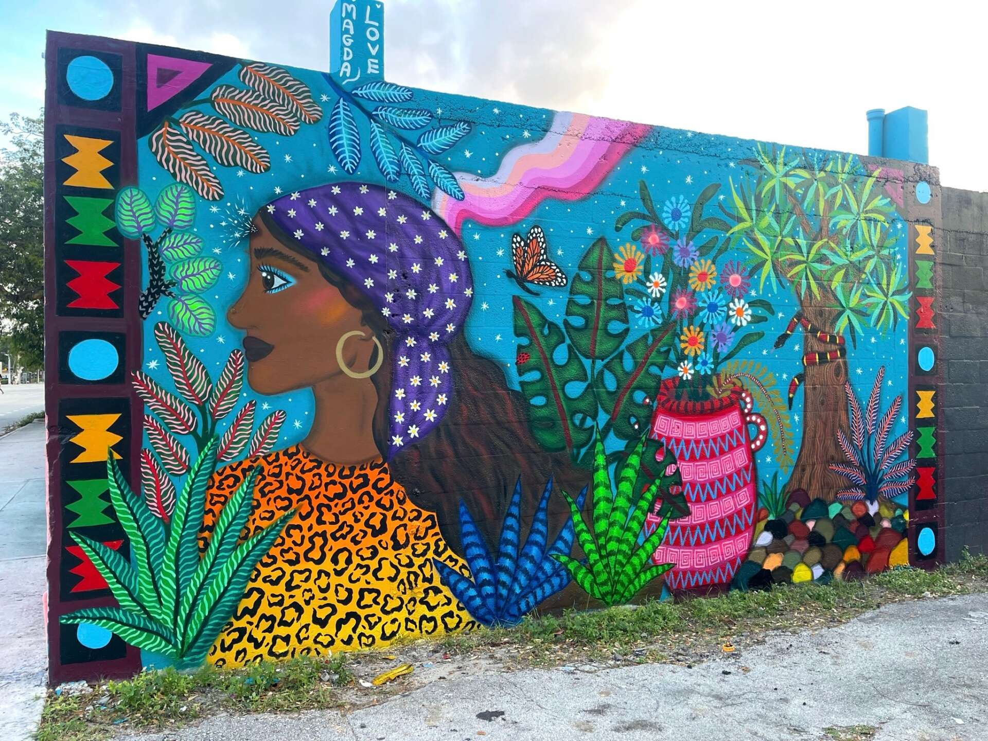 I am Magda Love, a visual artist and muralist. I was born in Buenos Aires, Argentina and immigrated to the US over two decades ago. I grew up in a very creative environment. My mother is a teacher who always stimulate us to learn, find joy in education and community. My father was a visual artist primary focused sculpture, he sparkled curiosity, experimenting and encourage us to be unapologetically be ourselves. Since a young age, I painted, designed clothes, took photos, created collages and experimented with lots of different mediums. Creating was a part of my DNA, it wasn’t for a purpose or end it was just natural part of my daily life. After having my first solo show in NYC, all organically landed if painting my first mural. I remember painting my first mural In Brooklyn, the bells rang and felt this is it. I received overwhelming positive response and encouragement from the beginning. It has been key for developing my practice to create bonds with all these wonderful people who supported my art from the beginning.