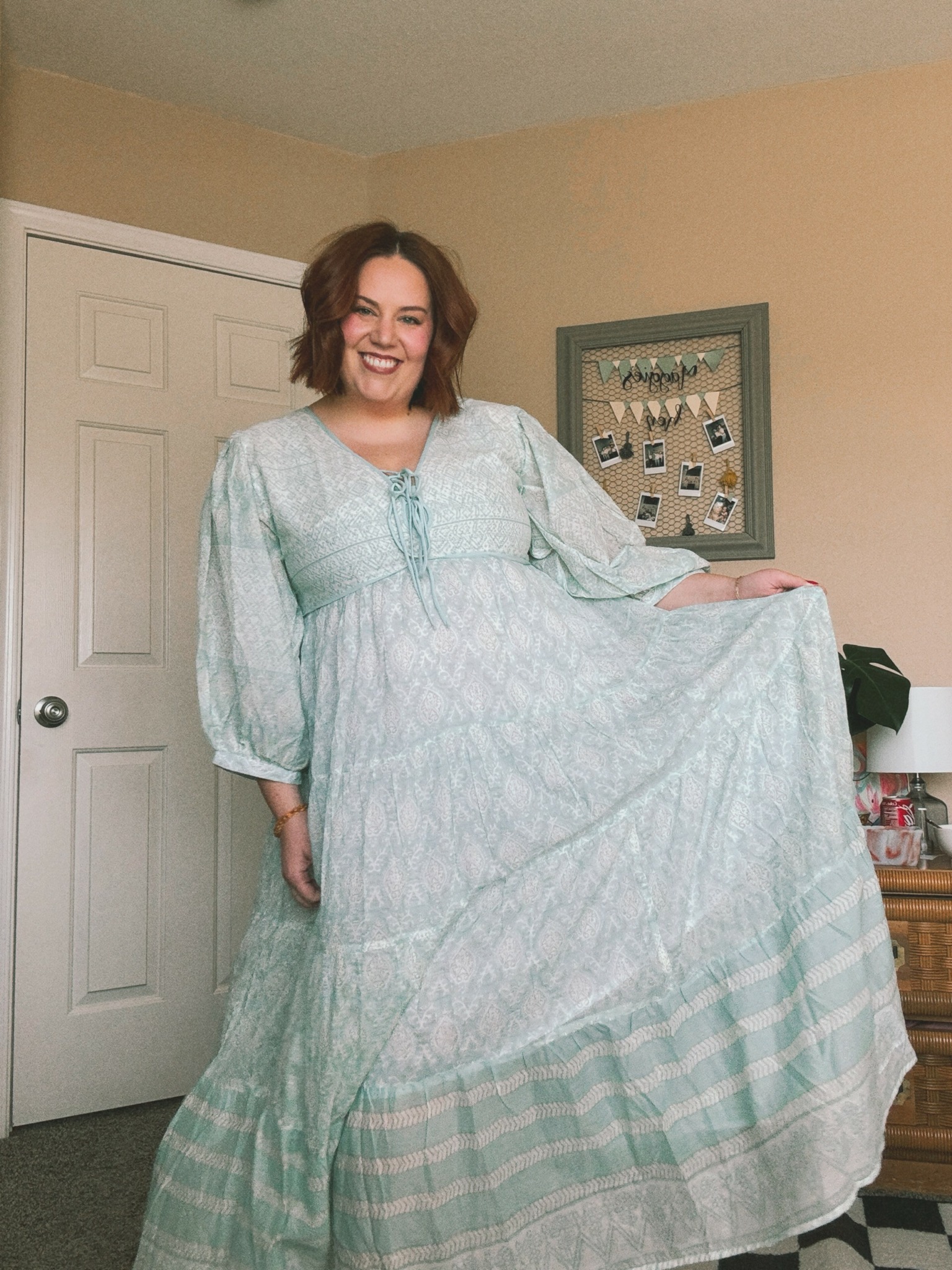 I am a content creator and started my page back in 2020 just before the pandemic hit. I was living in London with my husband and wanted to fill my time with something creative. I was really drawn to the body positive movement after years of self-loathing and crash diets, the notion of loving your body no matter how it looked felt so novel. Once the lockdown began, I had more time to create content and my account grew very quickly. Since then my life has changed dramatically and I have been so thankful for the community that has followed me throughout those changes. Although I still hold space for body positivity/neutrality, it is now more of a space to discover my new fashion sense as a mother, being a representative for women with similar bodies who don’t see themselves in mainstream media, and just having fun!