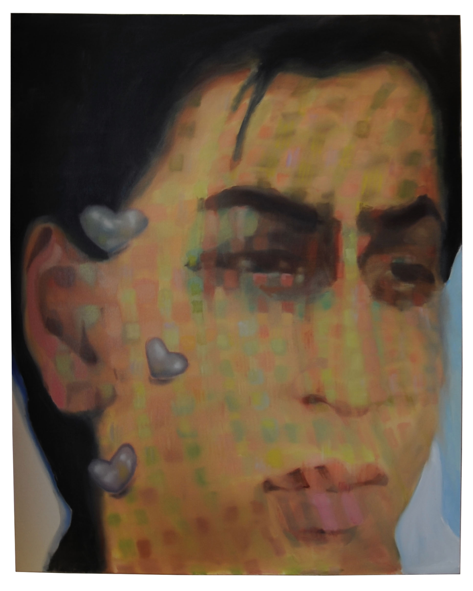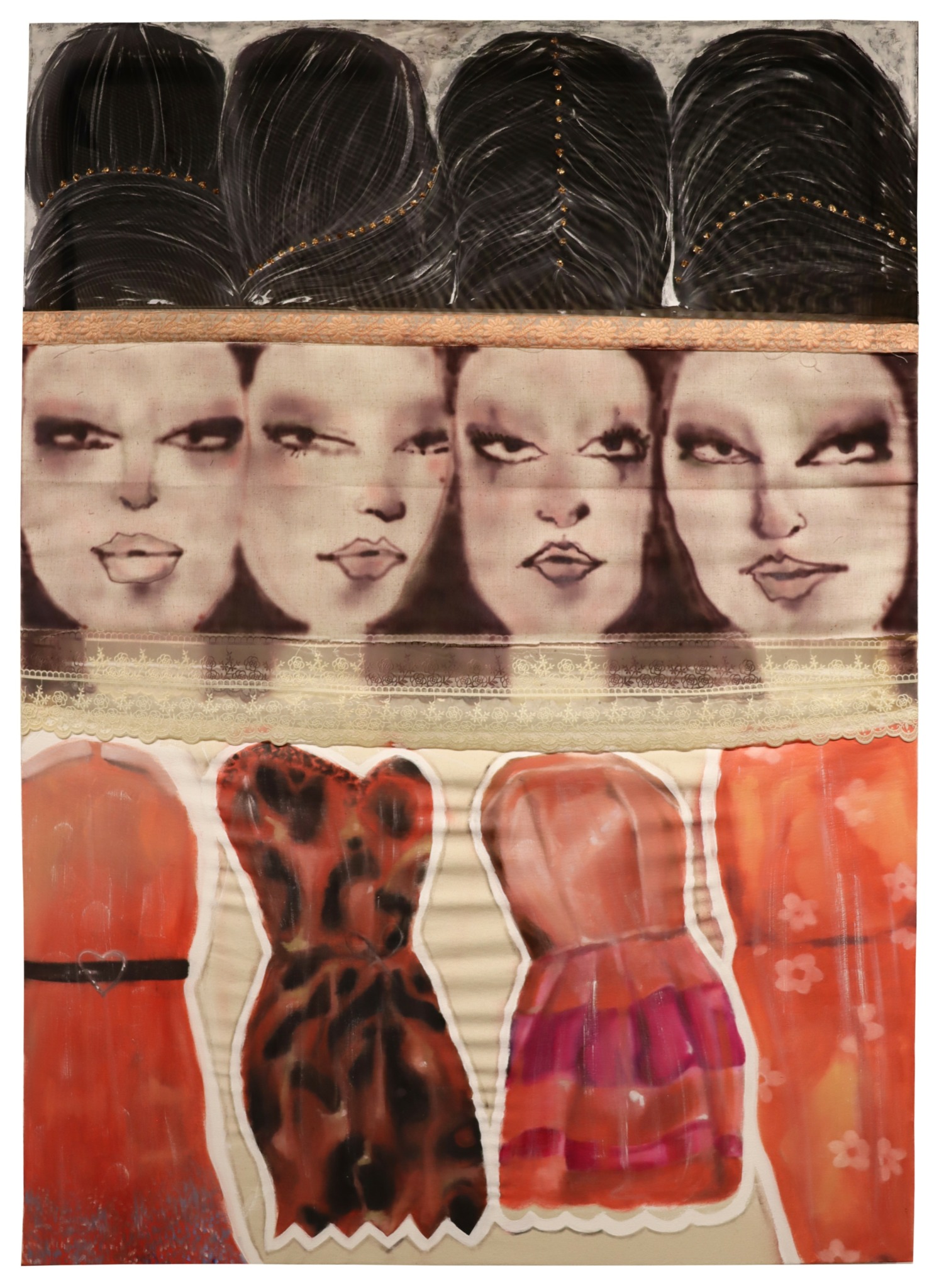 For me, the act of painting is like a dance. I’m able to be intimate with this beautiful object that I’m constructing and it’s such a gratifying process for me to push paint into a surface and have it push back emotions, thoughts, and feelings into me. I think of me and my painting as equals in a sense, we have a sort of pedagogical relationship. The language of understanding what my surface needs from me in order for us to create this image together is extremely interesting- almost like a puzzle we’re trying to solve. I use different mark-making, colours, shapes, oil painst, fabrics, gemstones, airbrush, and many more mediums to weave together my stories. I paint because I decide that the beauty I see in this world is important enough to me to record in paint form. Beauty is necessary, beauty is a need, beauty is a desire, beauty is a weapon and beauty is politics.