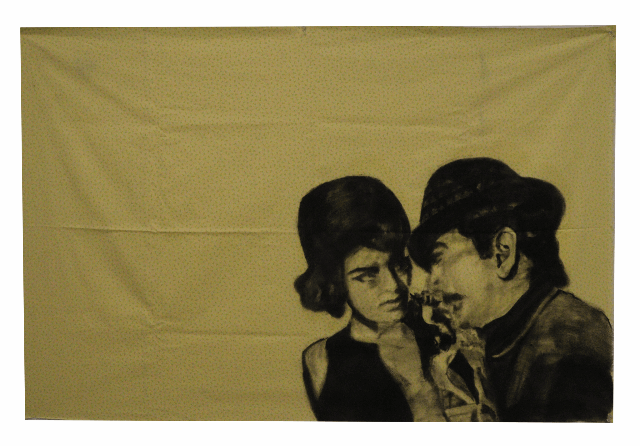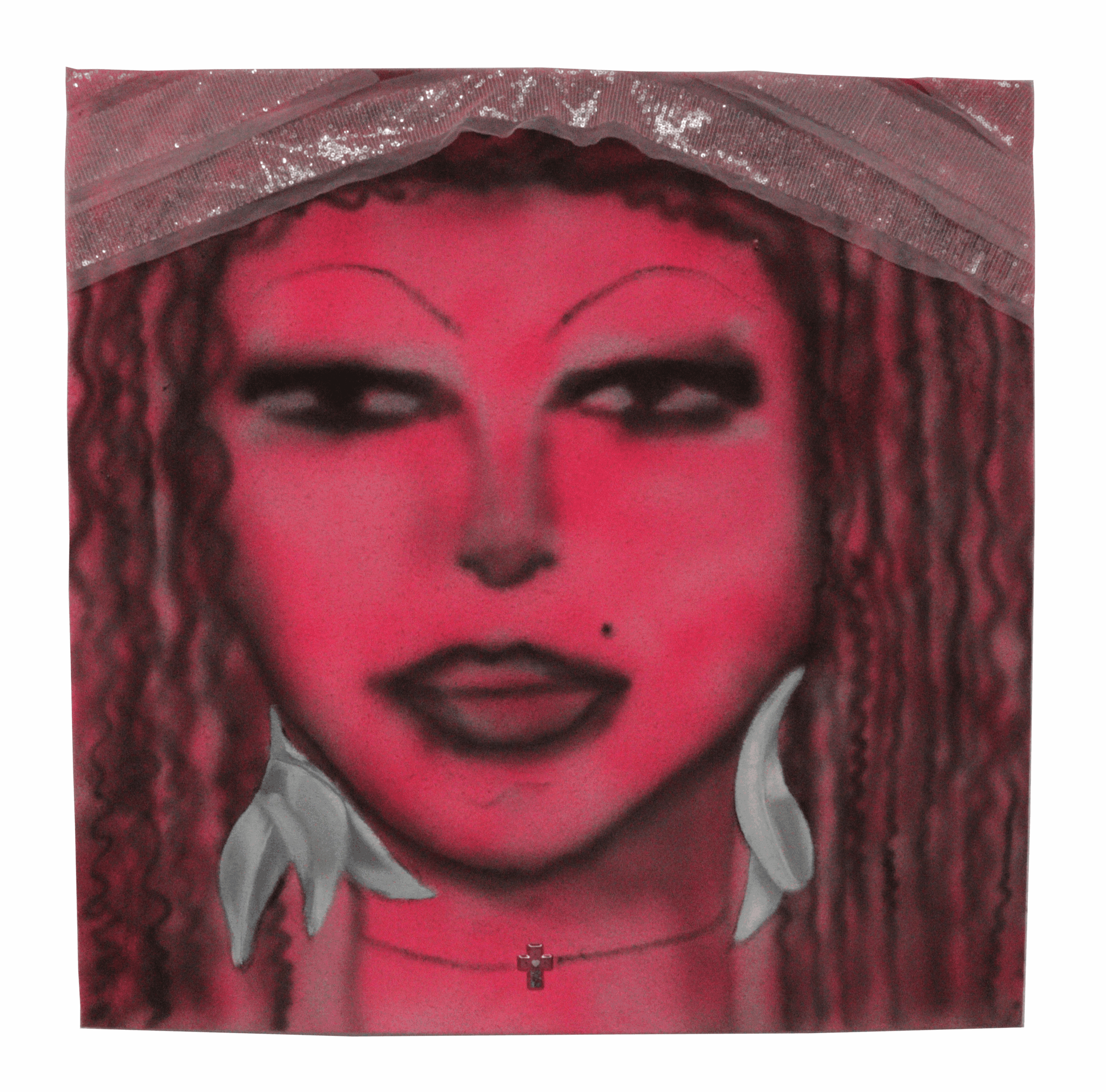 I’m a painter from Mumbai, India and I’m currently pursuing a BFA in Painting at the Rhode Island School of Design. I’m obsessed with the icon of the female in cinema, particularly popular Hindi cinema, or Bollywood. I’m interested in the dichotomy between the inherent performative nature of films and the genuine emotion evident from it. I wish to celebrate its beauty, joy, hysteria, bravado, levity, candour, musicality, and most of all its authenticity. I find agency in femininity and objectification and attempt to navigate an insatiable desire for beauty that exists within me and in the society of Mumbai that I operate in. The interaction between human eyes and digital screens informs the way I paint. The intimate act of accessorisation by myself or as seen by a heroine in a film is how I approach “dressing up” my paintings with paint and material. The ‘femme fatale’ is usually the centre form and image in my paintings. I’m interested in having my work speak to the old, as well as the new. I paint on different fabrics that remind me of costumery or reflect the visual and material culture I grew up with. I want to continue this research on finding humanness (desire, love, joy, and connection) through the constructed confines of film and paint.