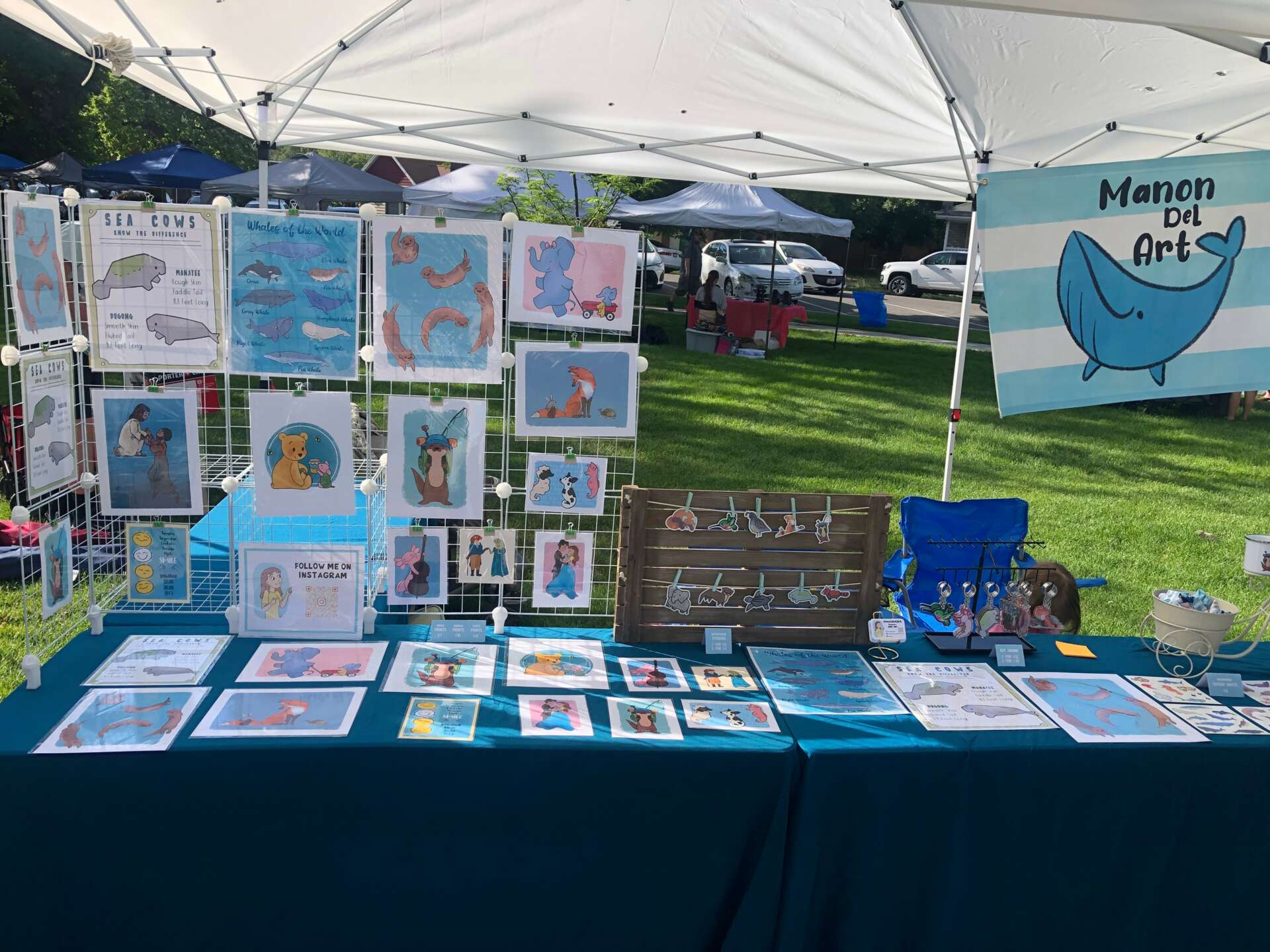As an artist, I hear people say all the time, “I love your art, but I don’t know where I’d put it.” Because of this, I’ve come up with ways that allow people to enjoy my art in a practical way. At my Painted Tree boutique, ManonDeLArt, in Orem, I sell my art on purses, shoes, shirts, stickers, scrunchies, and more. I also occasionally take commissions. I’ve done logo design, pet portraits, and family portraits.