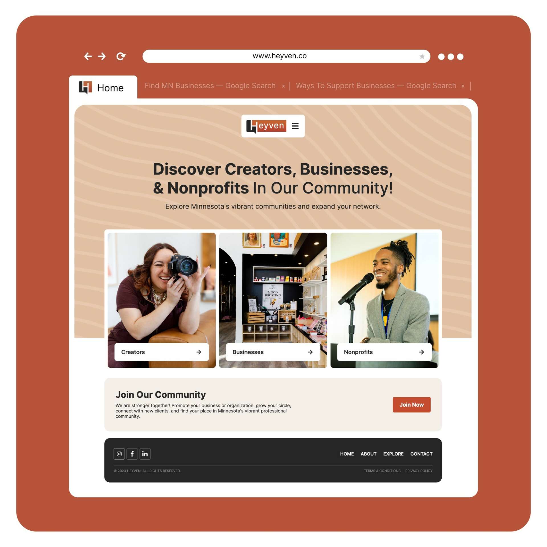 Heyven was born from this struggle. We felt Minnesota needed a one-stop directory that champions community over competition, an accessible place that provides a new way to connect with amazing local creatives and businesses from the communities we most love to support.