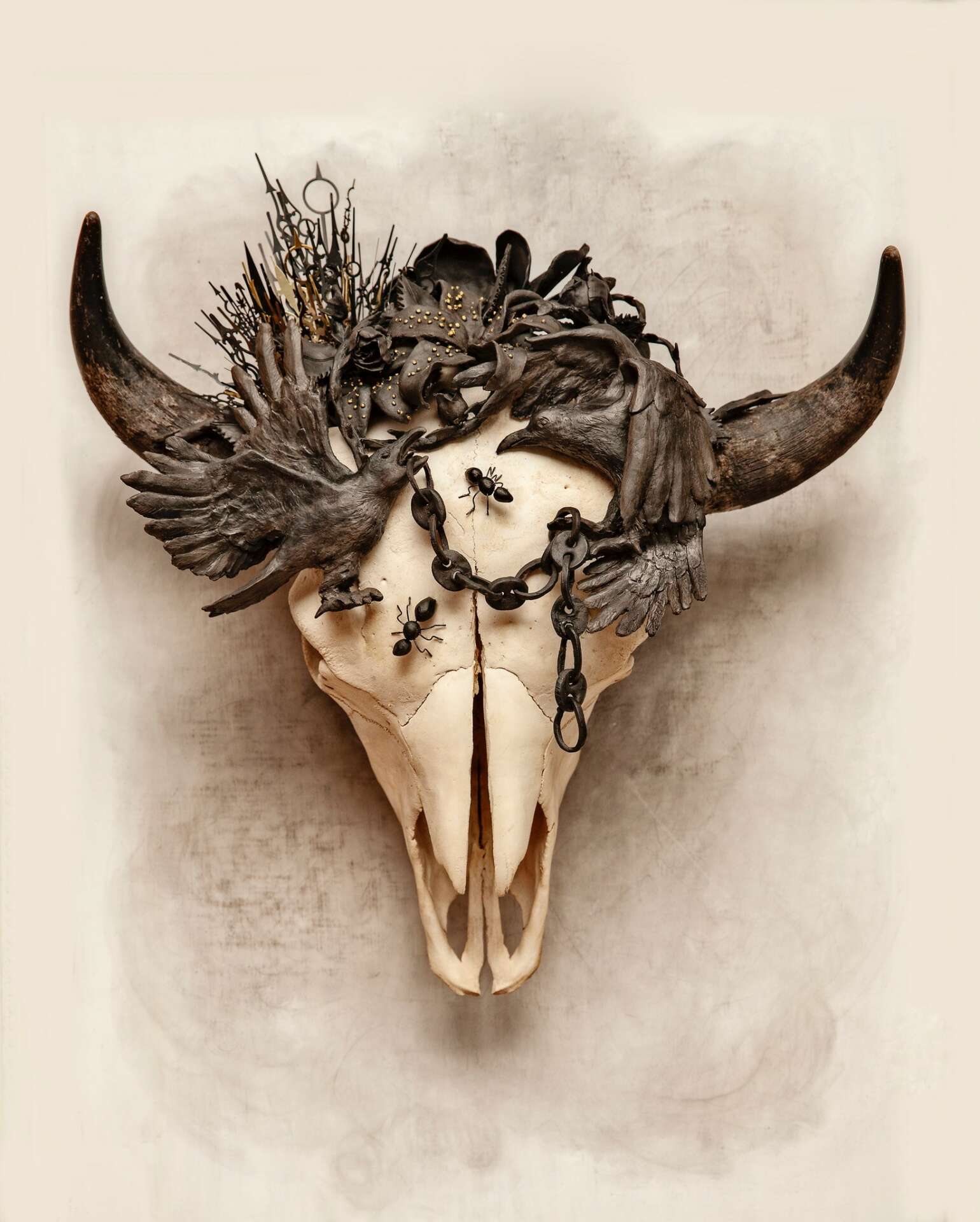 My biggest success in art is my unique approach and original imagery. A little over 10 years ago I started using animal skulls to convey imagery about nature and the passage of time. These portraits on nature and the fragility of humanity have continued to be a well of inspiration for me. I suppose it was my destiny. Looking back after I got out of art school, I had worked for years in the floral industry as a floral designer. I wasn’t particularly making a lot of art during that time. I was however processing something deeper in my psyche that laid the ground work for the narrative and inspiration behind my artwork today.
