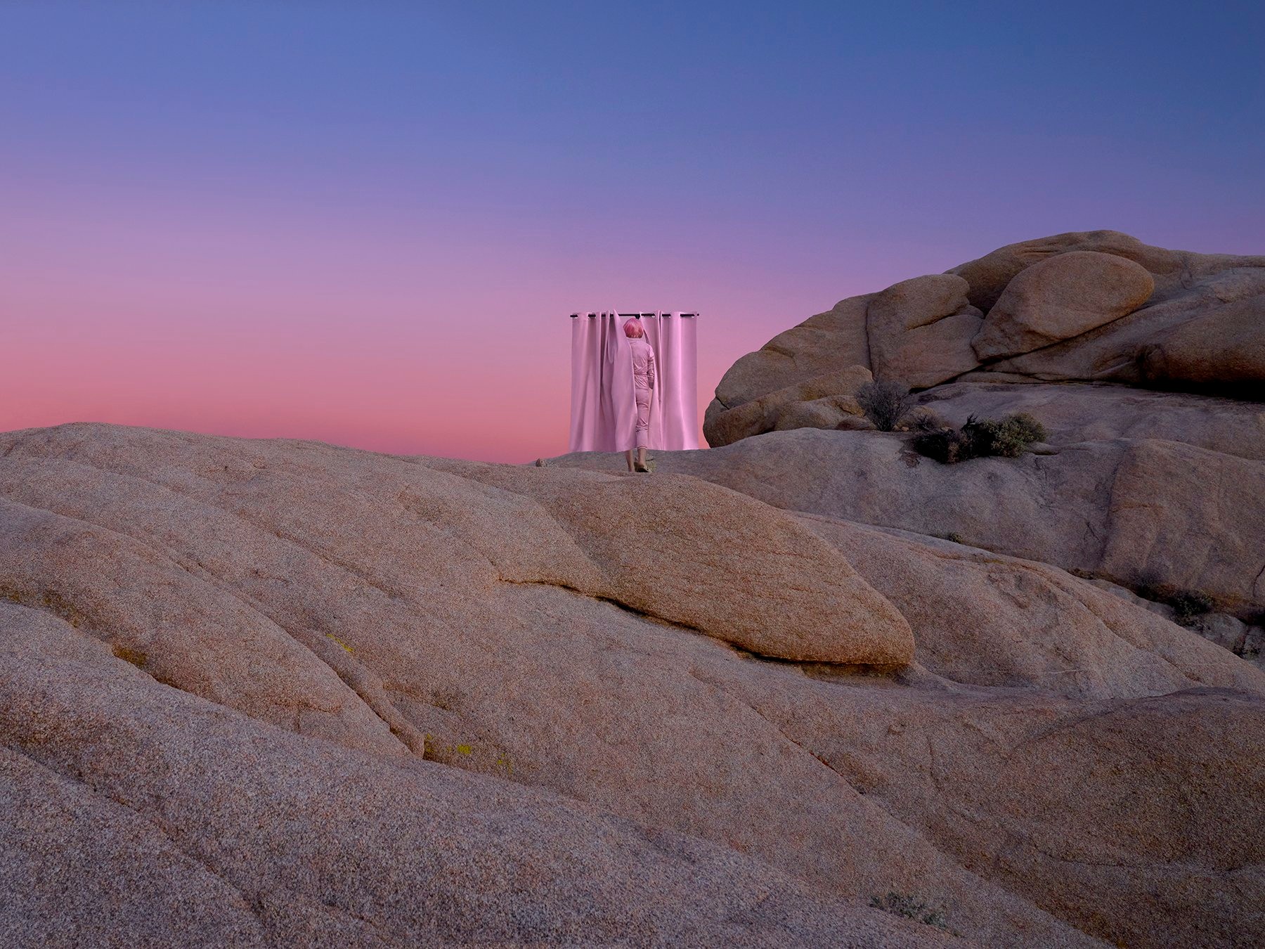 I recently completed a performative photography project called “Don’t Be a Square.” This project started in 2019 because I was thinking about ways to depict a disconnection with the landscape in reference to climate change. I see the Anthropocene age (era of human life) as a glitch in time; it is so short in the greater timeline of all life, and yet has caused so much havoc. To create these images I been staging site-specific interventions in the landscape that when seen through a camera lens disrupt the landscape much like a glitch in the image. In my performative photographs, this glitch can be seen as a pixel, a cubicle, or a portal, yet there is a glimpse of the humanity that is both camouflaged into the land and completely disconnected from it. I use my own body and sets I build in dialogue with the landscape to create these images. In doing so, I am able to experience both a deep connection with the land and at the same time a disconnect. I see an inherent cultural disassociation with the environment as directly linked to climate change, and this is what I hope to highlight through these images.