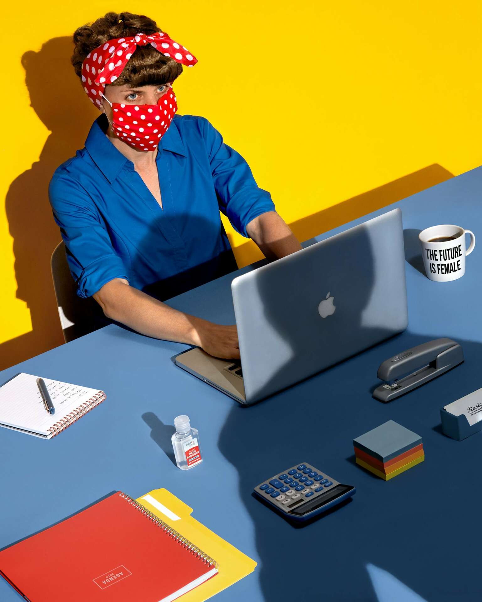 I knew that I wanted to be a photographer the second I got my hands on my dad’s 35mm Ricoh camera when I was 12. Even at a young age I was never very interested in documenting my life or capturing moments through the camera. I wanted to create an image or a scenario that did not actually exists. In my earliest photographs I would find ways to distort my reality by photographing through glass objects, hand coloring, double exposures and so forth. I was then lucky enough to go to college for photography which is when I discovered that I could use my own body, sets and costuming to build any image I wanted. Since then this is what I have been doing. I work in and out of the studio, creating immersive scenes from scratch or blending them into the natural environment. My practice includes my own artwork as well as photography for commercial and editorial clients. My images are all conceptually based- using color, surrealism, humor and specific propping to represent an idea. One of my favorites is a column that I do for the NYTimes every other week called ‘Work Friend.’ It’s a business advice column, and I am given the reader generated questions and then the freedom to come up with a photograph that represents their concerns. The result is often a personified animal, ridiculous office scenario, or a playful still-life. Overall I create layered conceptual images that reveal more and more unexpected elements the longer one looks at them.
