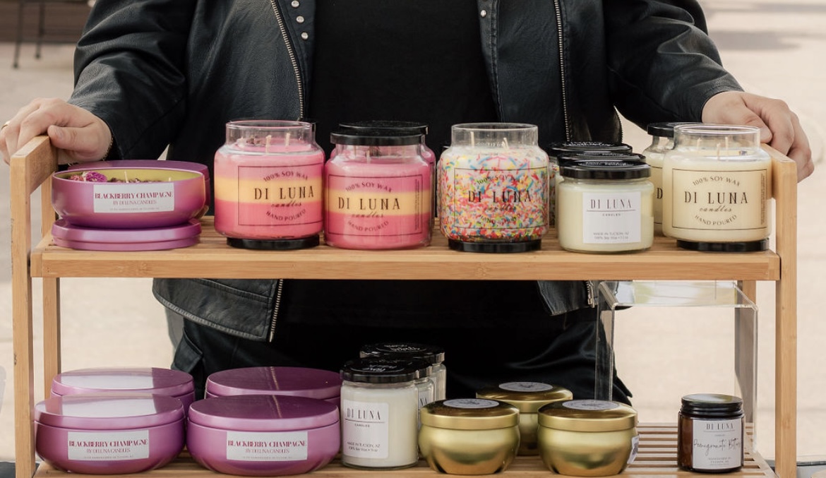 My name is Maria Jose Cortes, and I’m the founder and owner of Di Luna Candles, a woman-owned, Latina business based in Tucson. I started Di Luna Candles in 2020 with a deep love for handmade, sustainable goods and a desire to create products that bring beauty, peace, and connection into people’s lives. Our candles are made with 100% soy wax, eco-friendly materials, and natural elements like dried flowers, which make each piece a unique, intentional work of art. Over time, Di Luna Candles has grown from a small candle business into a full gift shop that features curated products from over 50 local and woman-owned businesses.