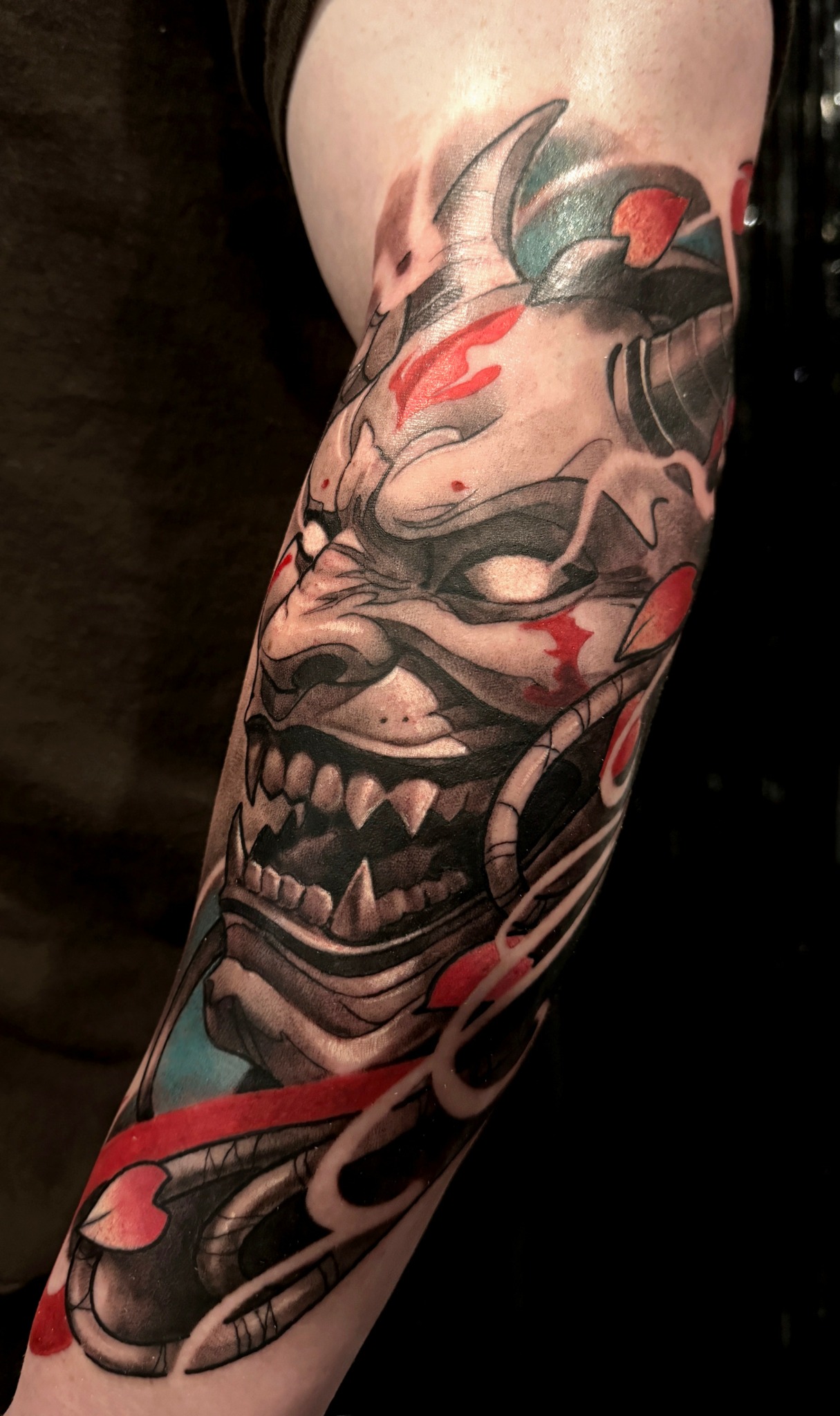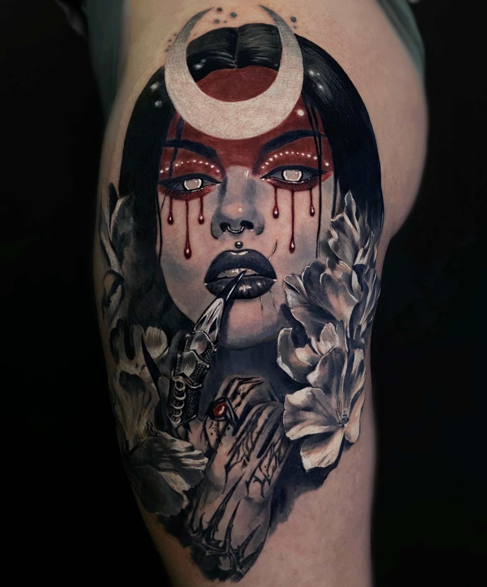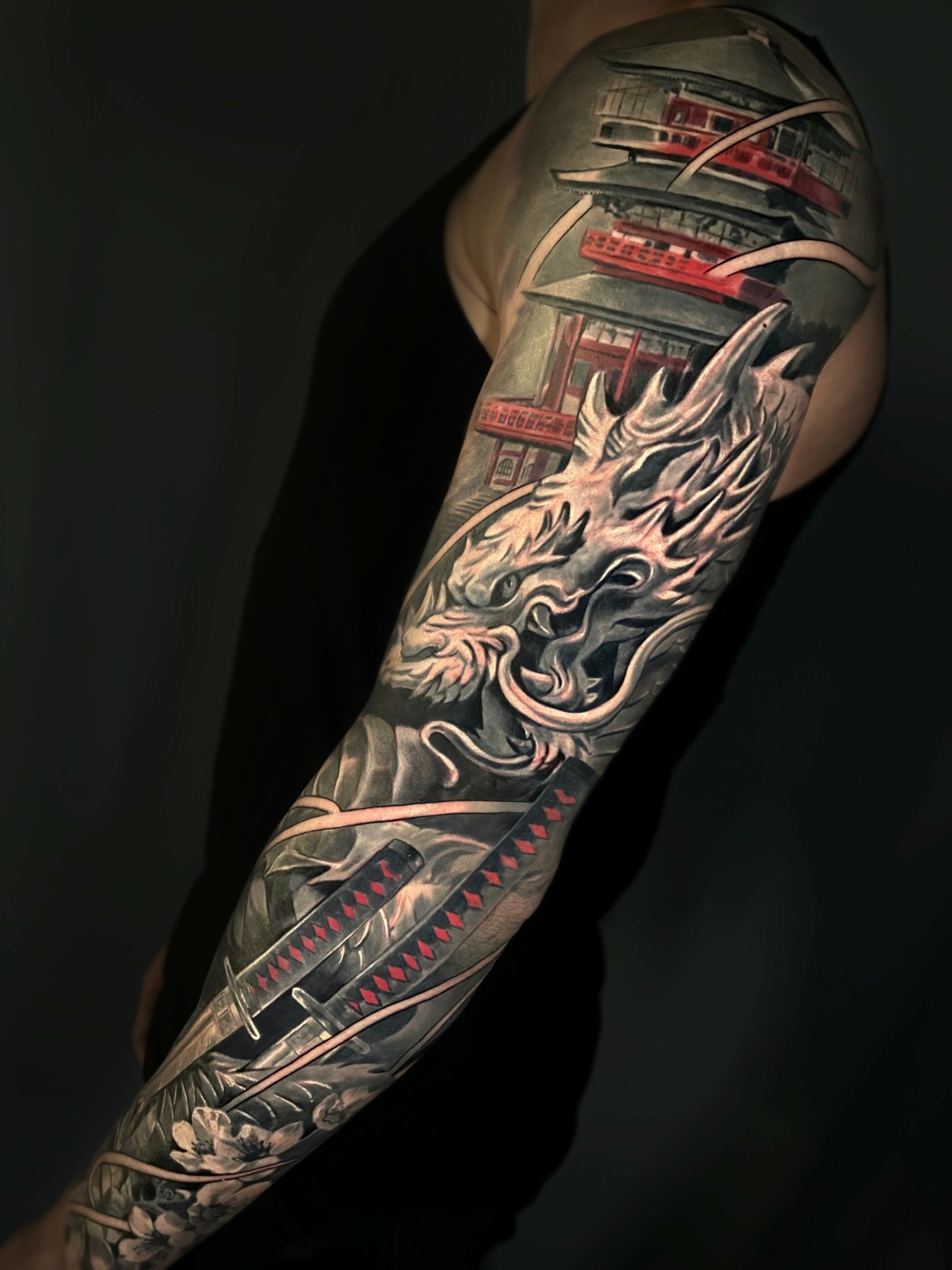 My clients often choose dark themes, such as vampires and other mysterious characters. This gives my work a special atmosphere. I love mixing styles, for example, combining black-and-grey realism with Japanese elements, which allows me to create complex and unique projects.