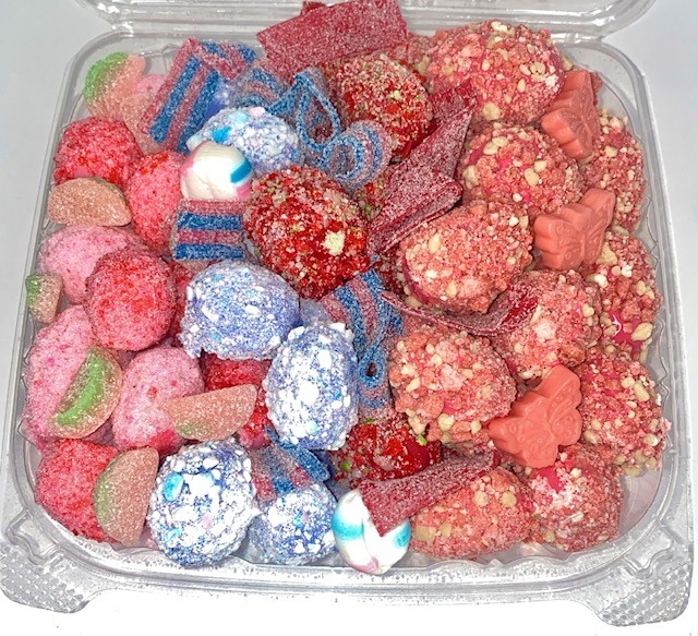 Not only do we offer sweets, but also an exciting experience itself! When you think of candied fruit, you don’t really know what to expect because it sounds so odd and unique. The crunchy candy exterior combined with the cold, juicy, fruity interior come together to make a delicious bite. These delectable treats are perfect for a party tray, gender reveal, wedding, late night snack, sweet treat, dessert, etc.!