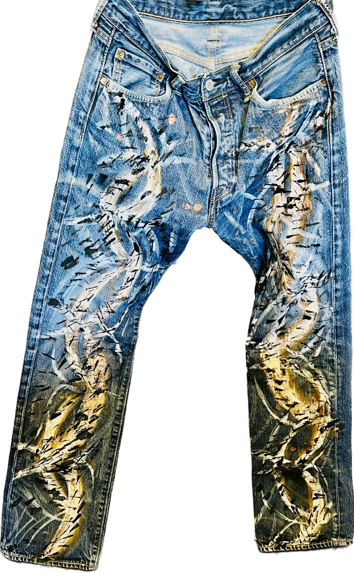 As an expressionist contemporary painter, my main activity is abstract acrylic quite big size paintings on canvas. Also, I started to paint on Levis jeans, which is very fun. I am currently painting my biggest artwork on canvas as ever, which I want to call “Touch of heaven”… To be discover in a while ! On another hand, I have also created NFTs, which are propose for sale as digital art, that you can buy in Crypto money on Opensea for instance