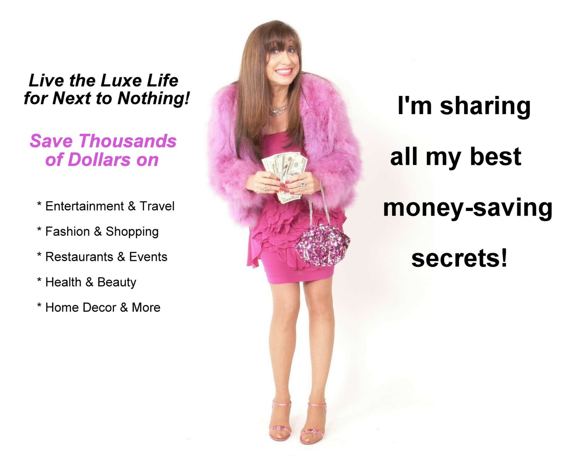 The book that I’m most proud of is How to Live Like a MILLIONAIRE When You’re a Million Short. It tells readers how to save thousands of dollars every year and enrich their lives at the same time. The book has all kinds of money-saving tips in the categories of entertainment & travel, shopping & fashion, health & beauty, home décor and more. Some examples are: how to go to gala events for free; how to see Broadway and local shows for only $5 a ticket; how to get your hair done at upscale salons for free; and my favorite tip – how to spend six nights at a 4-star-resort in Spain… FOR FREE! The book has been featured in Forbes and USA Weekly and won an award as the Best Book on Saving Money & Living Well of the Year. I also do a one-woman show and speaking engagements based on How to Live Like a MILLIONAIRE When You’re a Million Short. You can check the book out on Amazon at: www.HowtoLiveLikeaMillionaire.com