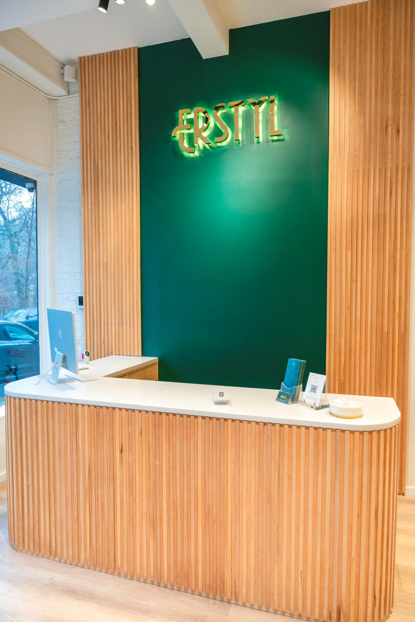 With the logo complete, I turned my attention to the physical space. While I was familiar with Westchester, I wanted to find a location that would align with the spirit of my vision. After much searching, I discovered the perfect spot in Scarsdale, NY. It had everything I needed and more, setting the stage for the next challenge—designing the interior. I enlisted the help of a 3D render designer on Fiverr, and together we created a stunning, modern space that perfectly reflected the energy of Erstyl.
