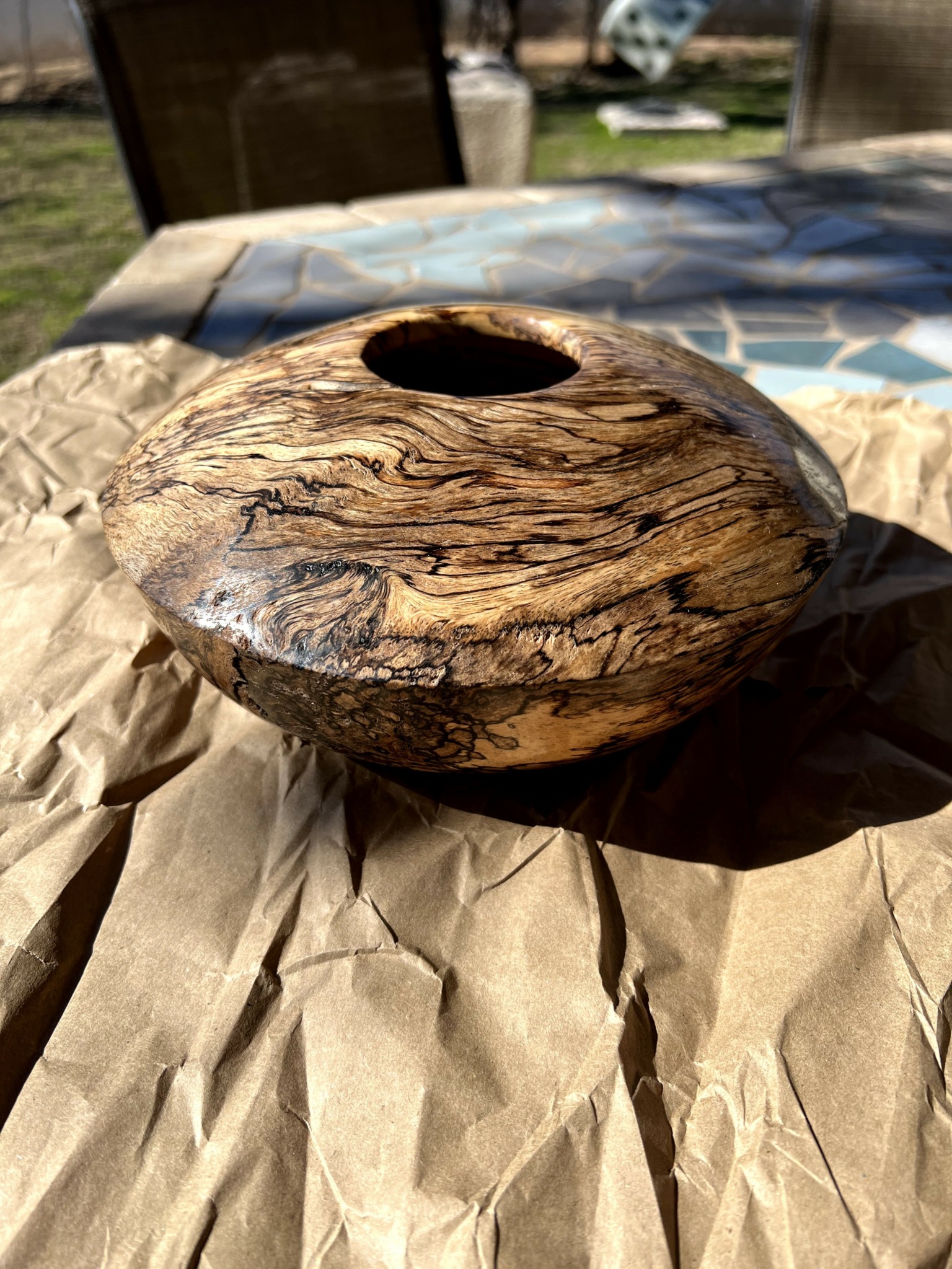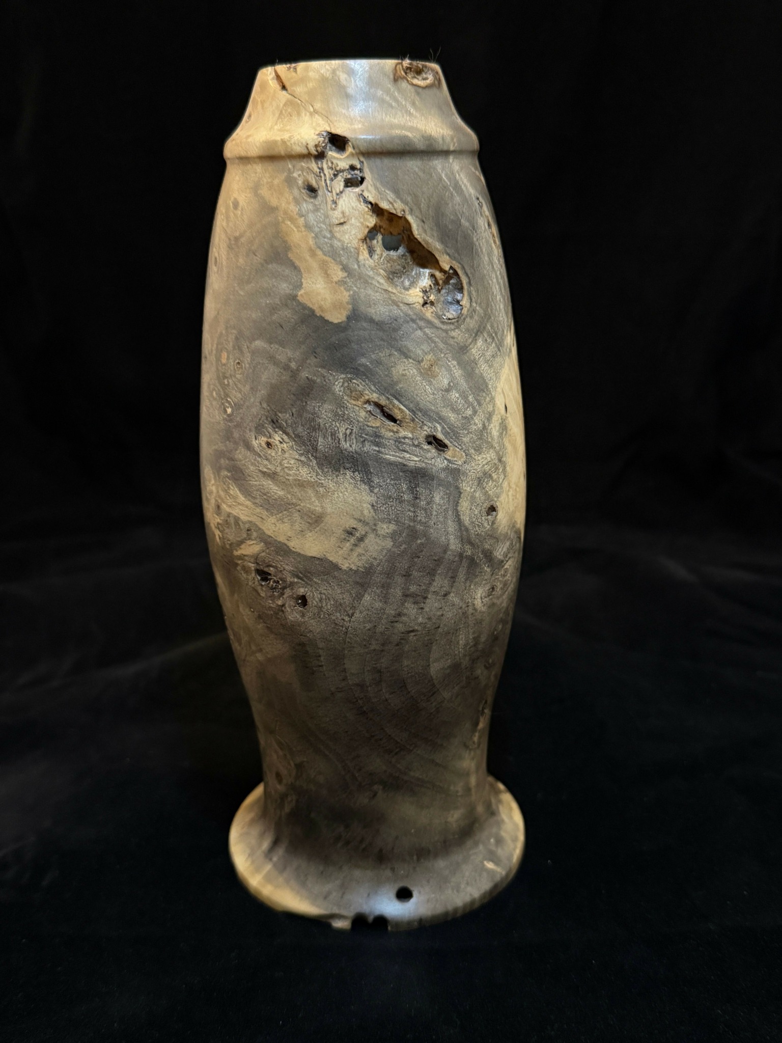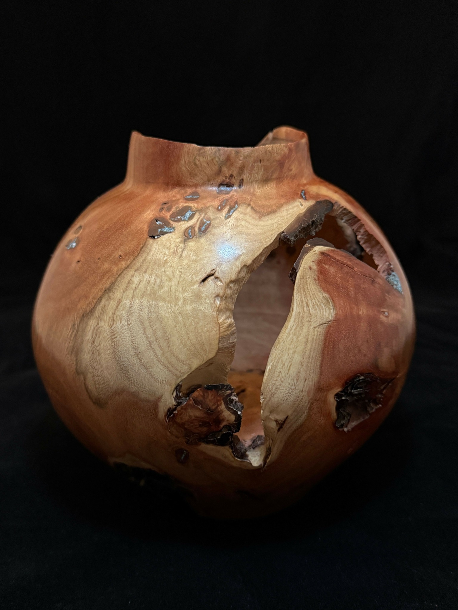 Wood Turning, yep we did that in shop class , my dad, grand dad, great grand dad did that, we saw it in a crafts demonstration and on and on and on. From the start that’s the usual response i get from people who ask how i make the pieces i show. The fact is, it’s a very small part of the actual art form. First is the sourcing and cutting of the wood that will be your blanks that you will work with. Next, we have to look at the cut blank and decide how its going to look when its done, from the raw grain of the tree that you have in front of you. then the actual roughing of the blank to make the basic shape takes place. It’s only then that you see how much work you have in front of you. It may need time to dry further, it might need to be stabilized, or have inlay poured before final turning. once the shape is finished, hollowing can take 1/3 of the total time to finish the piece. Sanding, LOTS of sanding before a final finish can be applied. Its a bit more complex and involved than it looks!