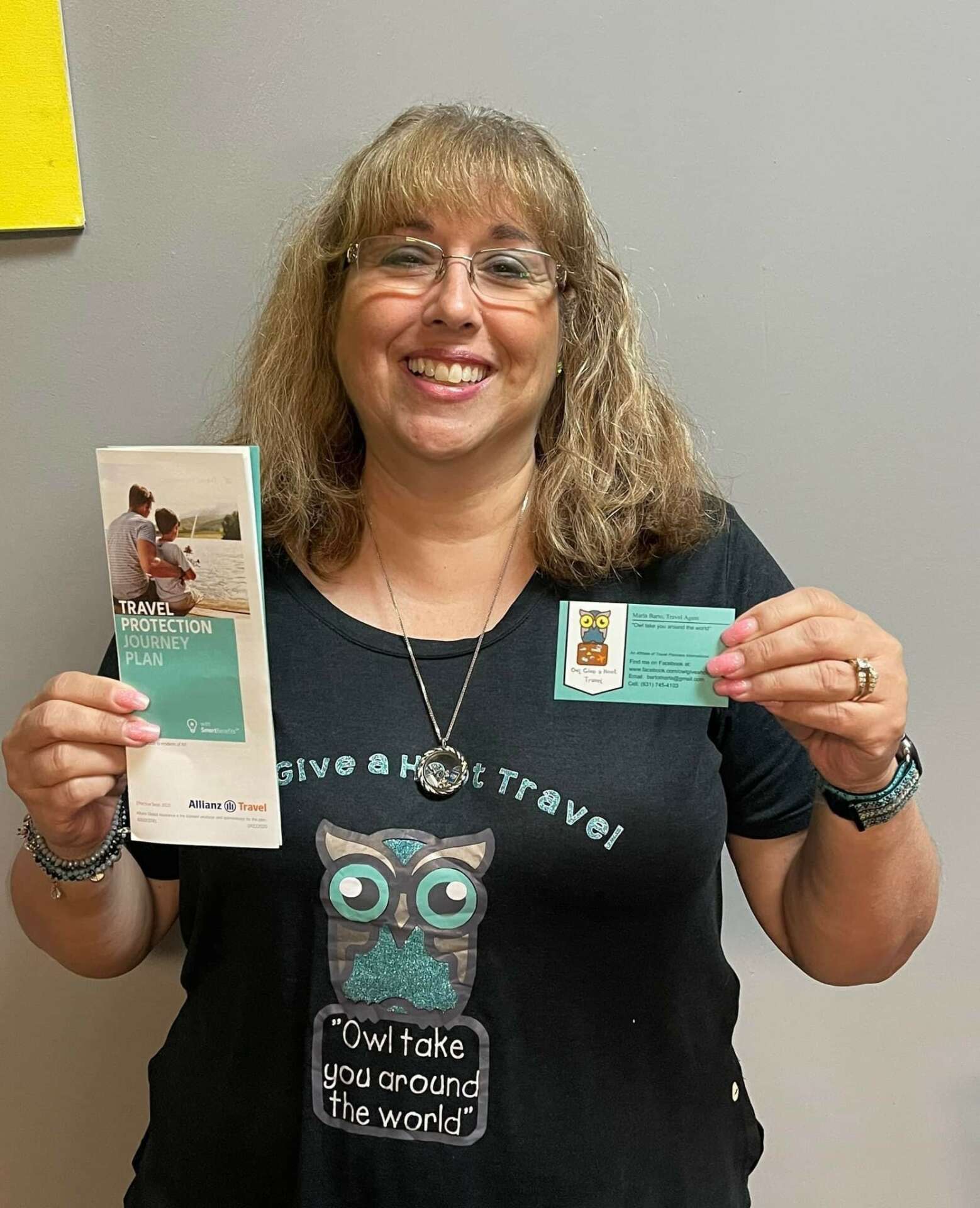 Hi. I am Marla Barto. I am a travel agent and my company name is Owl Give a Hoot Travel. My tag line is “Owl take you around the world.” It is quite interesting how I became a travel agent. I graduated Hofstra University with my Bachelor’s degree- with a major in Psychology and minor in Elementary Education. When I was young, I always wanted to be a teacher. I was doing counseling when I graduated college but then I moved to Philadelphia to take care of my sick grandmother. I ended up working as a receptionist at a law firm. I then went on to get my Paralegal and Elder Law Certificates from Penn State. I worked as a paralegal for 12 years. My husband and I have been married for 20 years and we have a 19 year old son. Once my son was born, I was a stay at home mom and volunteered at his school. In 2012, I started selling Origami Owl Jewelry. Over the years I always booked my own travel and my family’s travel. I had relatives and my friend who was a travel agent say I should become a travel agent. Well that opportunity came up on Mother’s Day 2017 when I broke my foot. I was couch bound not able to walk for 8 weeks so I took the travel agent course to become a travel agent and subsequently signed up with a host agency to be a travel agent. When it came time to think of a name for my agency, I wanted to keep with the “owl” theme since I was also selling Origami Owl jewelry.