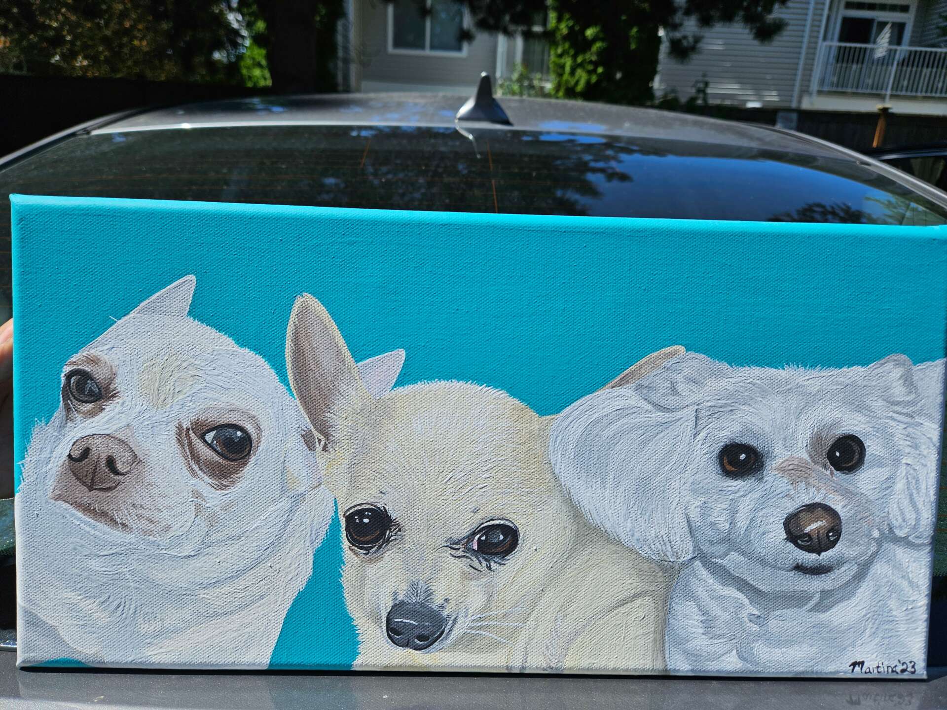 After moving across the country, a friend told me about a popular pet company that was hiring artists remotely to paint pet portraits. I applied and was hired, then for 2 years, I was painting about 100 pet portraits per month. Some of those people that received the portraits searched for and found me on Facebook and my website. They reached out to thank me for the work I had done and some wanted to commission more work as well.