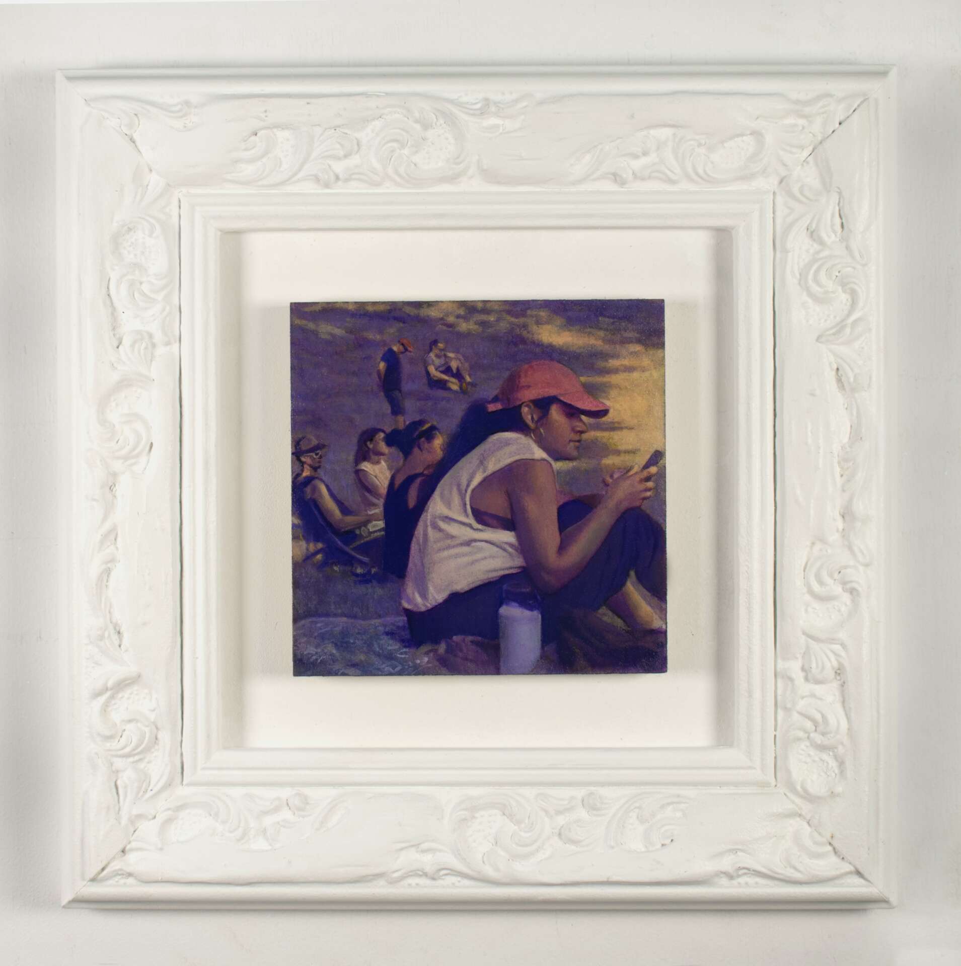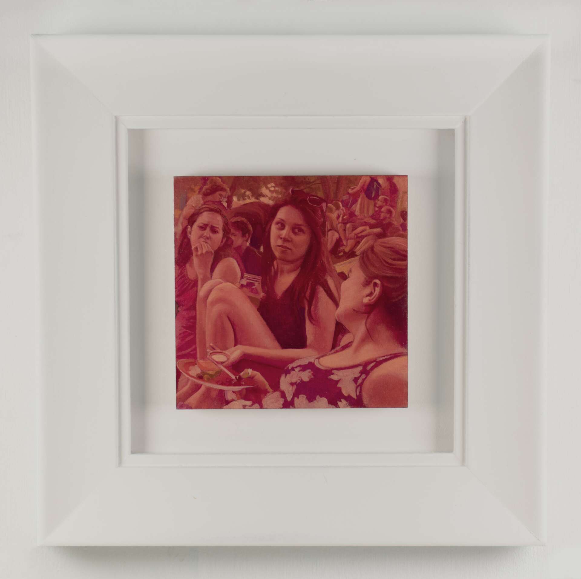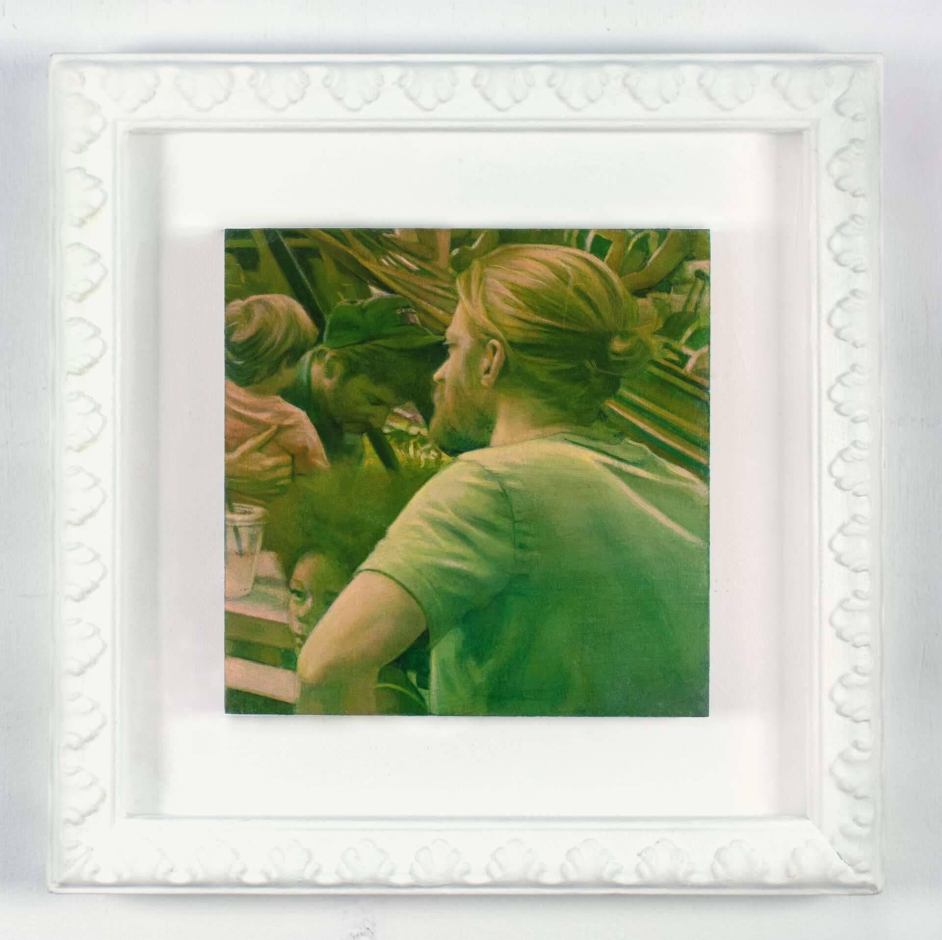 I am primarily a figurative painter who focuses my practice on multi-figure portraits of people in public. My work is about the connections between people, and the ways we affect each other – knowingly and unknowingly – when we gather together. For my most recent body of work, I have set each image in the same location: West Philadelphia’s iconic Clark Park, a few steps away from my house, which serves as a busy and somewhat chaotic social hub for my neighborhood. Sharing this common space, by choice or by chance, the subjects of the paintings are seen in unguarded moments of connection, synchronicity or reflection, in a state of suspension between individual and communal identity. Inspired in part by the Parisian park and garden-party paintings of French Impressionist painting, the work imagines this public square, with its radical possibilities for community and collective effervescence, as a kind of everyday utopia.