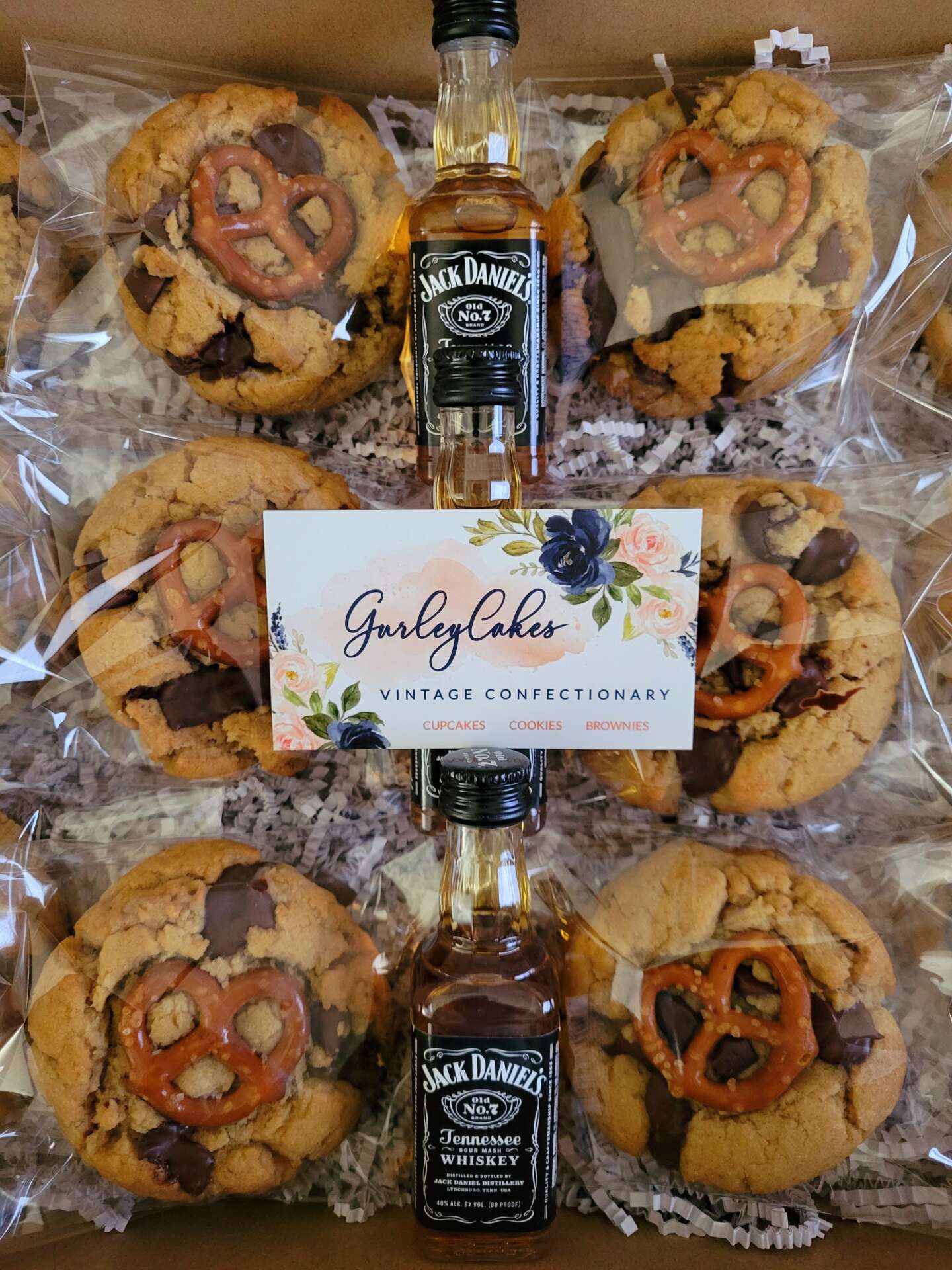 Some examples of my menu items are Carrot Cake and German Chocolate cupcakes, ultimate chocolate chip, peanut butter, and sugar cookies. My specialty desserts come from my Prohibition line of cookies, which includes The Bourbon, The Bailey’s, and The Crown. These are unique, as most people have not heard of these type of cookies that are made with alcohol.