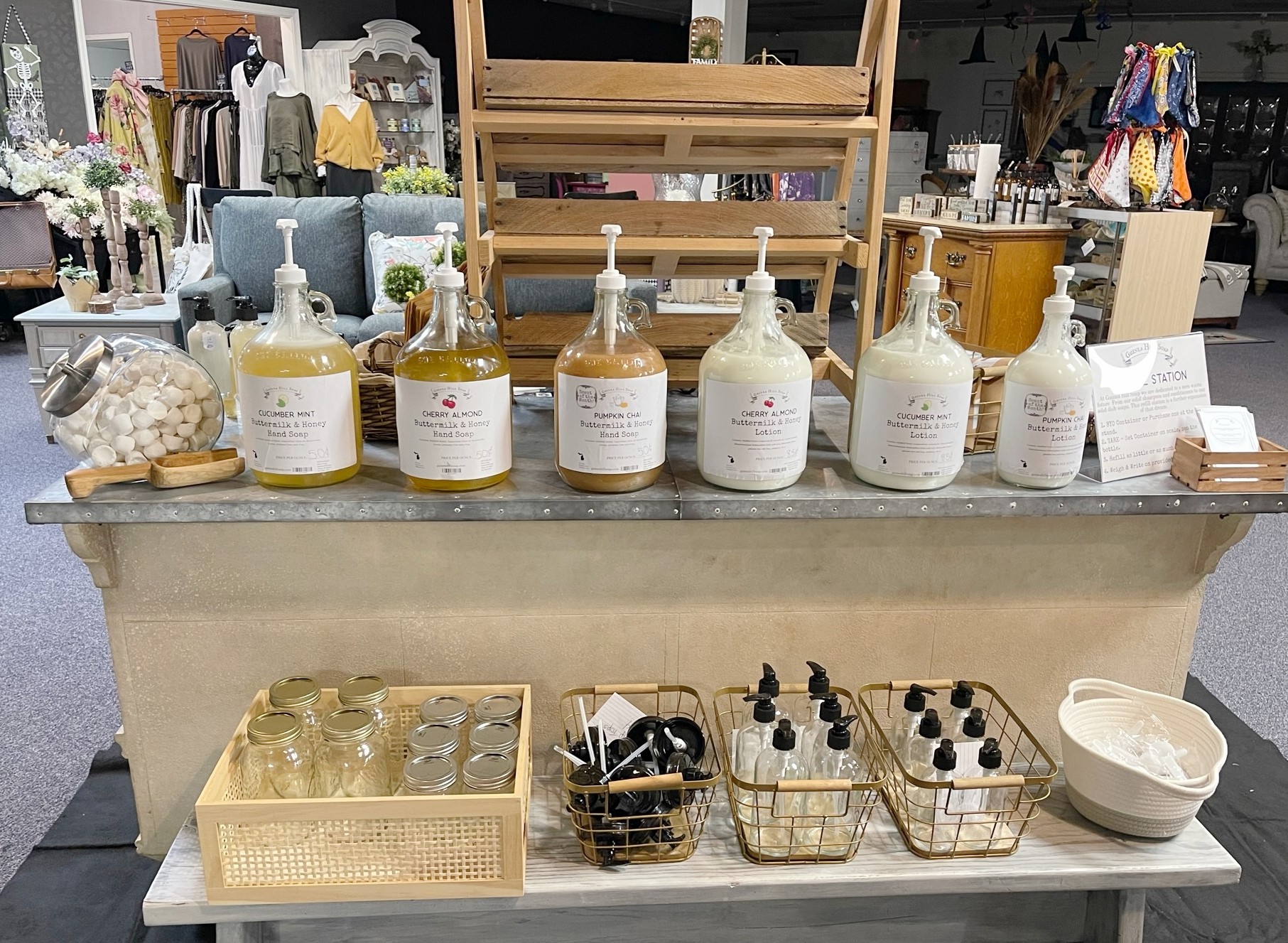 We are taking it a step further this year and have expanded into a refilling station that offers our soaps, lotions, body washes, bathroom cleaners, even fabric softener. This Guinea Hill Soap Refill Station can be found at Artistic Interiors in Fenton Michigan. And there customers can purchase what they need, by the ounce, at an affordable price. Products that are eco-friendly and simple, bottled up for you or bring your own container. This has been a great hit and we have big plans for 2024!