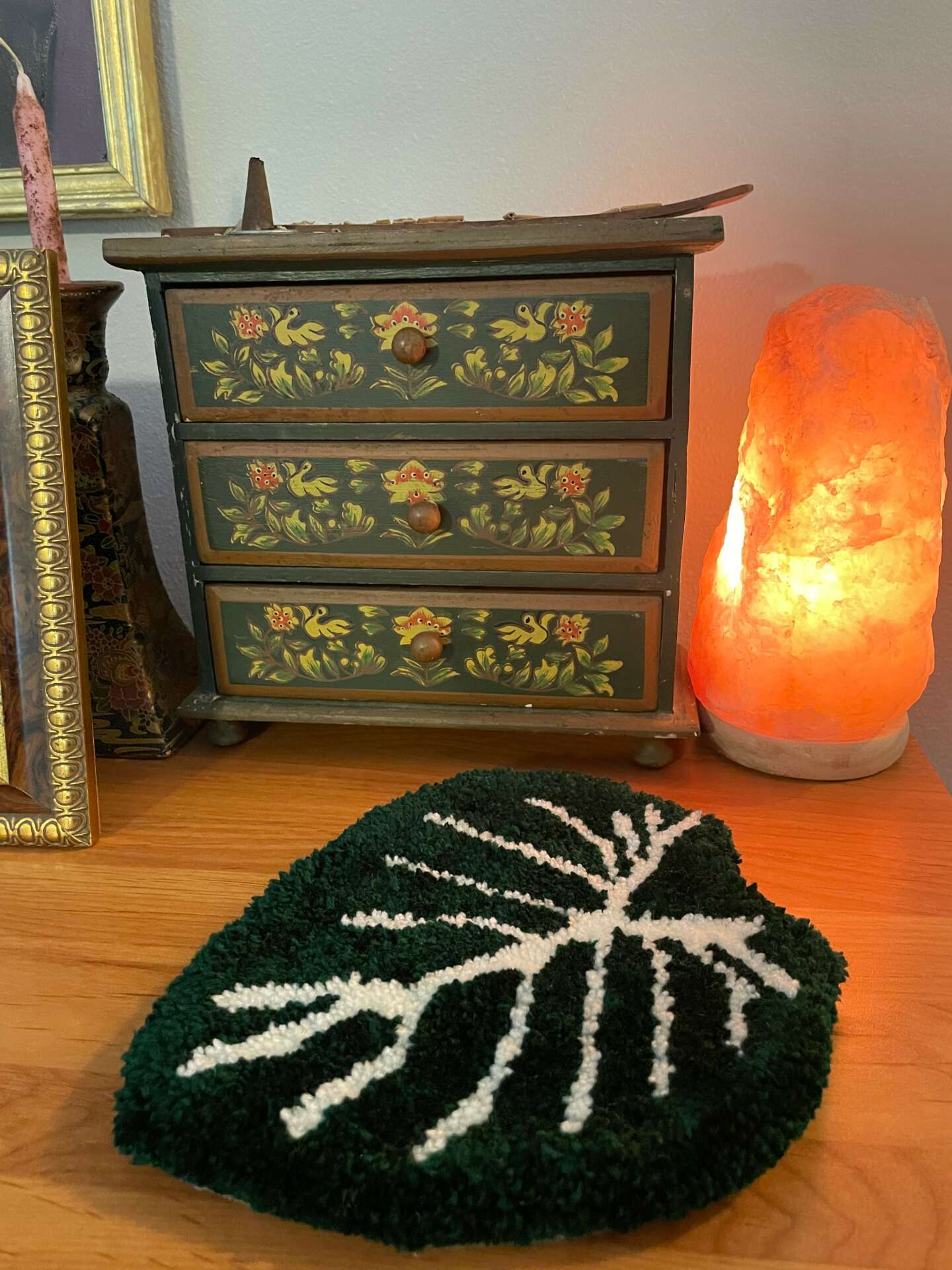 My name is Marybeth. I’m 33 years old. I am a textile artist that specializes in handmade punch needle and tufted home goods. Everything is made from upcycled / secondhand materials. I decided to pursue my art full time in 2020 right before COVID. I was working as a supervisor at Luckys Market. They went bankrupt right before the shutdown so I call it divine timing. My grandmother was a seamstress so textiles have always been my obsession. I make coasters, rugs, mirrors, wall art, small furnishing and plant decor. What sets me apart from others is that I make everything from scratch. I make the paper for my business cards. I make the displays for my products. I make everything or source everything second hand. I’m most proud of this because I am conscious about our environment and the waste we consume on our planet. I want everyone to know art can come from anything and repurposing goods can be functional!