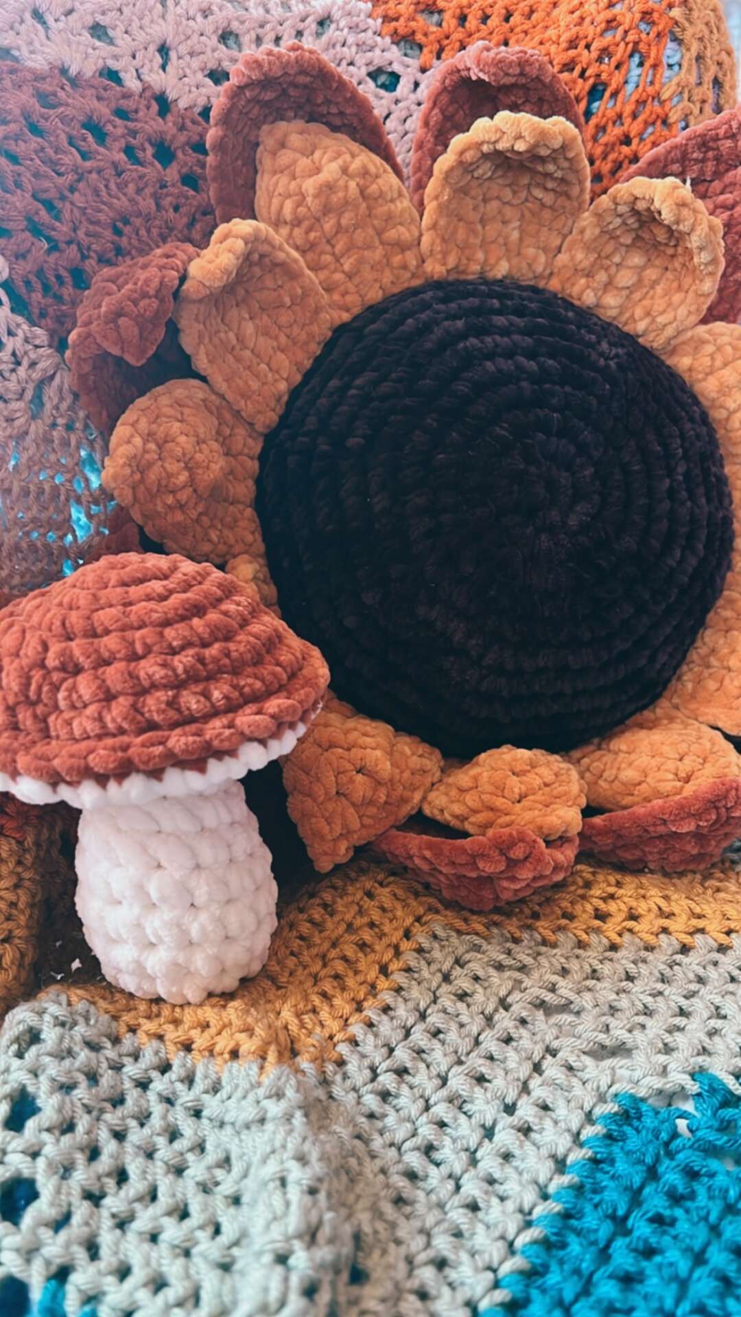 My vibe is 60s/70s revival with rich textures, bold but muted colors, and groovy and funky shapes. I love being able to bring a unique, catered, vintage feel to things that are one of a kind. When I pick up my hook and yarn, I am creating something that will be loved and cherished for decades, so I ensure to produce only the highest quality my hands can possible provide.