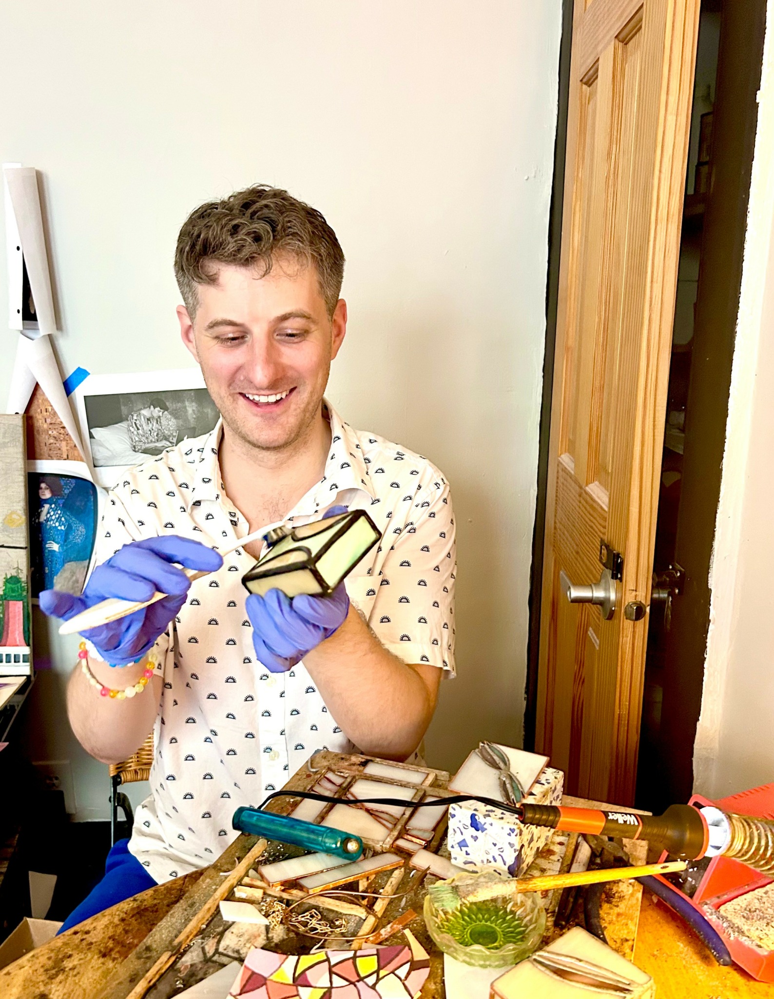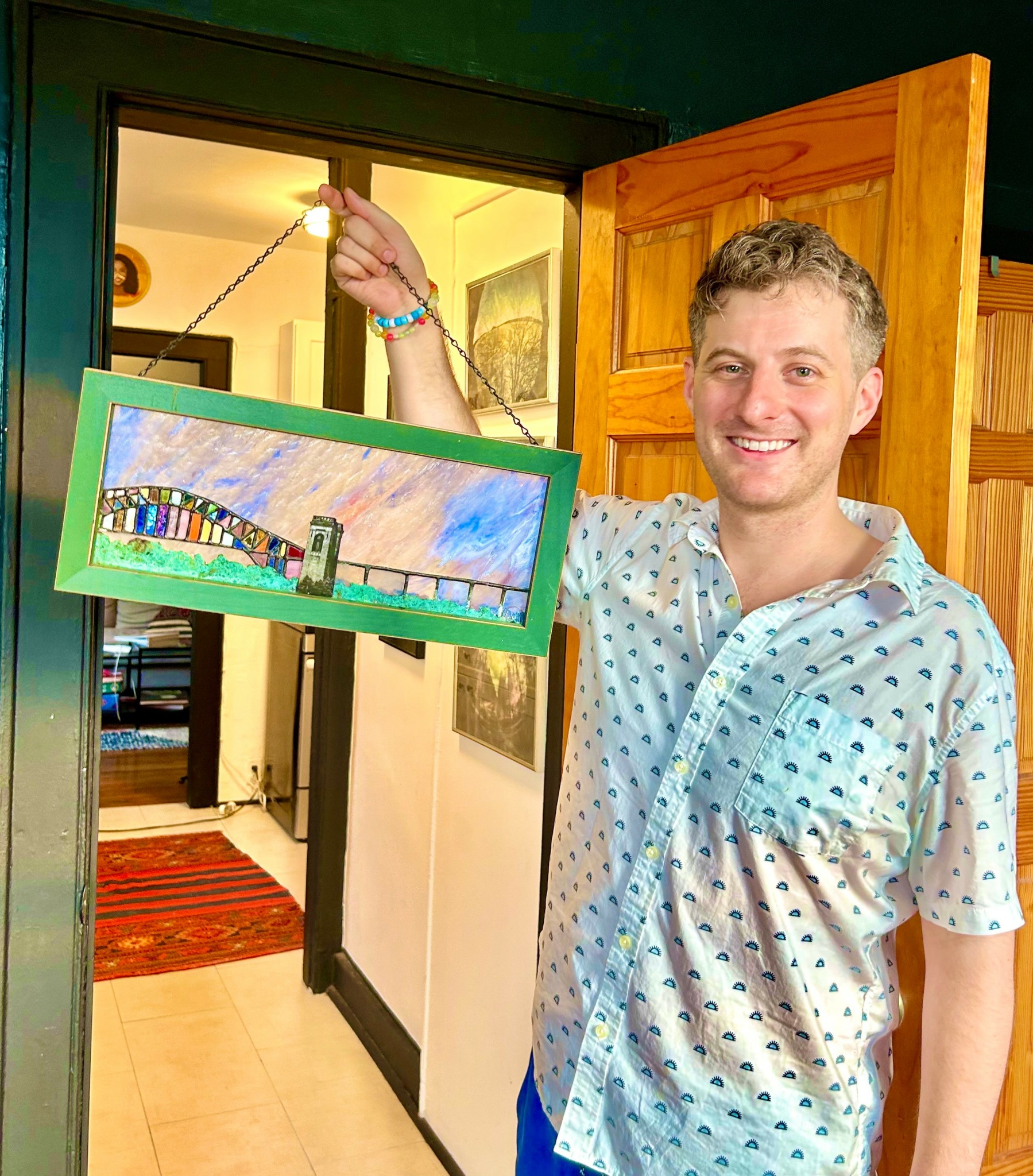I am also a stained glass artist. I have a small business making handmade stained glass items like lamps, votives, nightlights, and windows which I sell on my Etsy page and to clients via my instagram. This was something I started during the pandemic when I was living with my parents in Upstate New York, but more on that later.