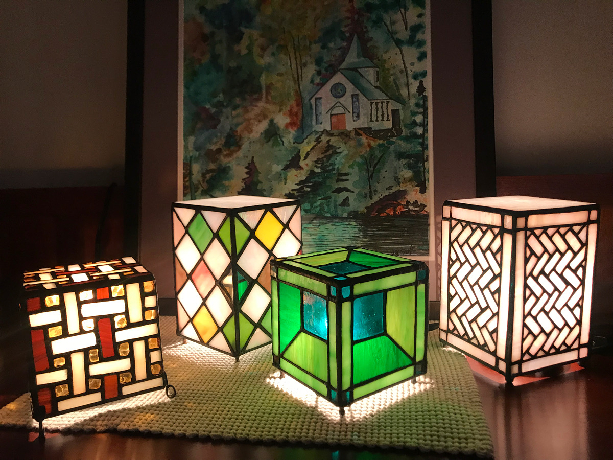 I began to make stained glass suncatchers to hang in windows. Friends and family would order them off Instagram. It was a great way to stay connected and spread some chear during dark times. I branched out into nightlights and lamps, votives, vases, and art pieces. I named my little studio Thrown Stone Studio and started an Etsy page. I liked the way that sounded plus it was evocative of a David and Goliath long-shot, the ripples of a stone thrown into water, the rebellion of “those in glass houses…” Basically, I was taking a chance. Why not start a business?!