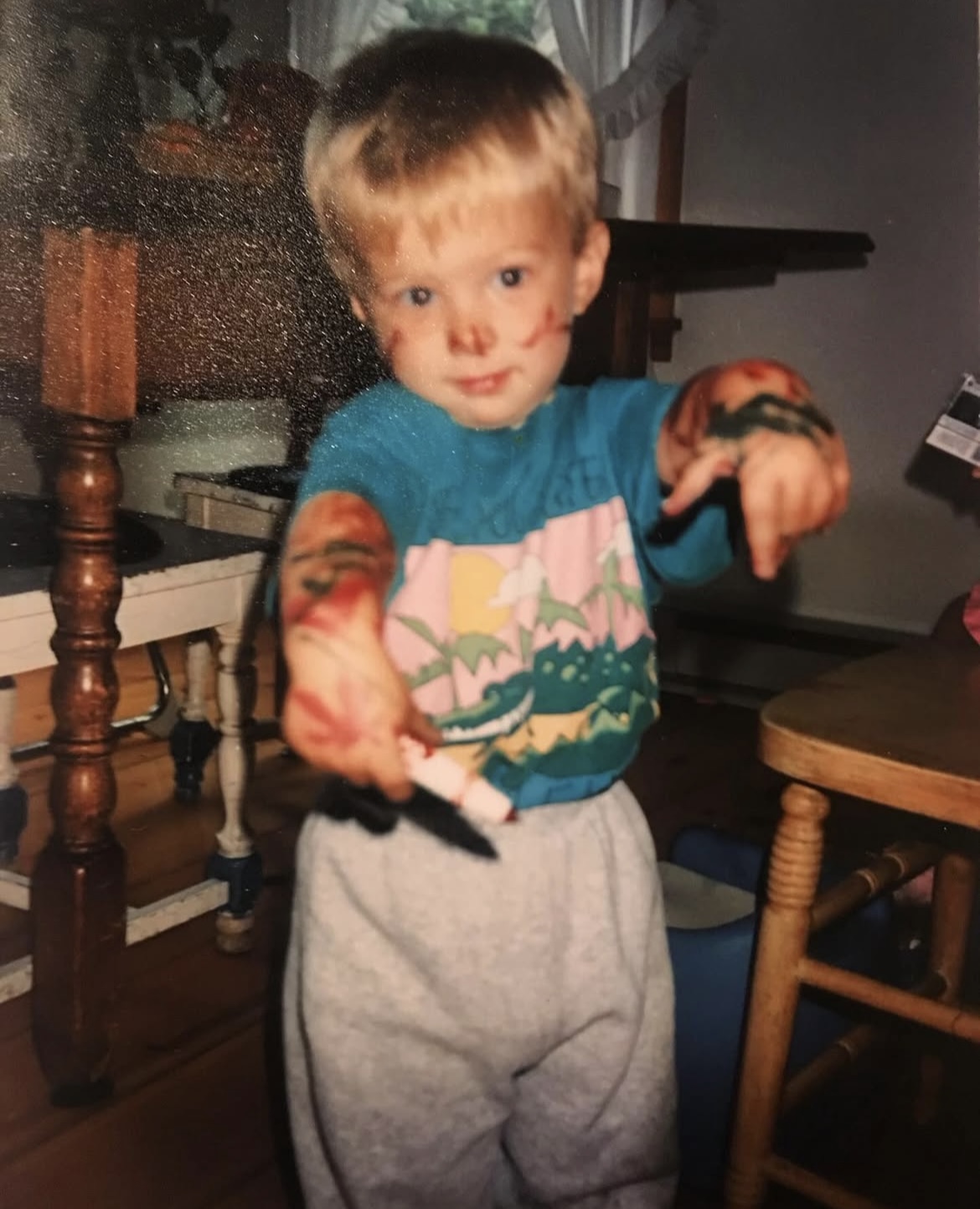 I was always a creative kid. I remember losing myself in a stack of multi-colored construction paper, scented markers, and safety scissors. I would just go for hours creating who-knows-what: figures, greeting cards, ornaments for the Christmas tree, mini-models of the scenery I saw in musicals. I swear you could see confetti flying out of my room like Edward Scissorhands. When I’d snap out of it, I would look up and be on an island of scraps, like the tide had come in while I was working. This is the kind of kid I was. And really, it’s the kind of creative I am today.