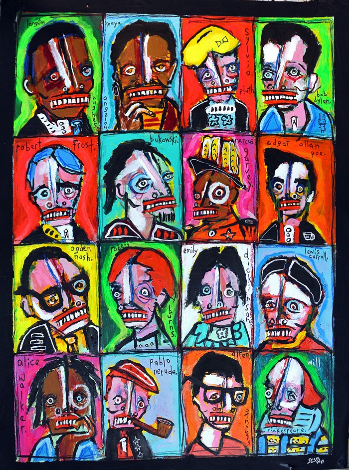 I was originally told and followed the idea that I needed to exhibit in galleries, provide exclusivity to some, and to have my art priced high. I’ve been creating my work and selling it for almost 30 years now and realize I am the only expert on my life and my story. A gallery is interested in making money… I am interested in continuing to create new art and tell my story until I die while supporting myself with the sales of my art. I have seen many times how artists start selling their work at high prices and then have to slow down their output in order to create the illusion of demand or rarity. I would be bored out of my skull and quite unhappy if I couldn’t be painting because I needed to keep my prices high. I love nothing much more that getting my original paintings into the homes of people that like my work. I spend every Sunday packaging up over 10 sales a week and shipping them around the world on Monday mornings. I live with my wife Dana in an 800 sq ft. apartment in downtown Washington, DC that also serves as both of our studios. The apartment studio space is divided by Ikea bookcases and soundproofing tiles. We sleep in a bunk bed. I am 56 years old. In a way I have also had to unlearn the ideas of mass consumption, a large house, a car, kids, the “American Dream”.