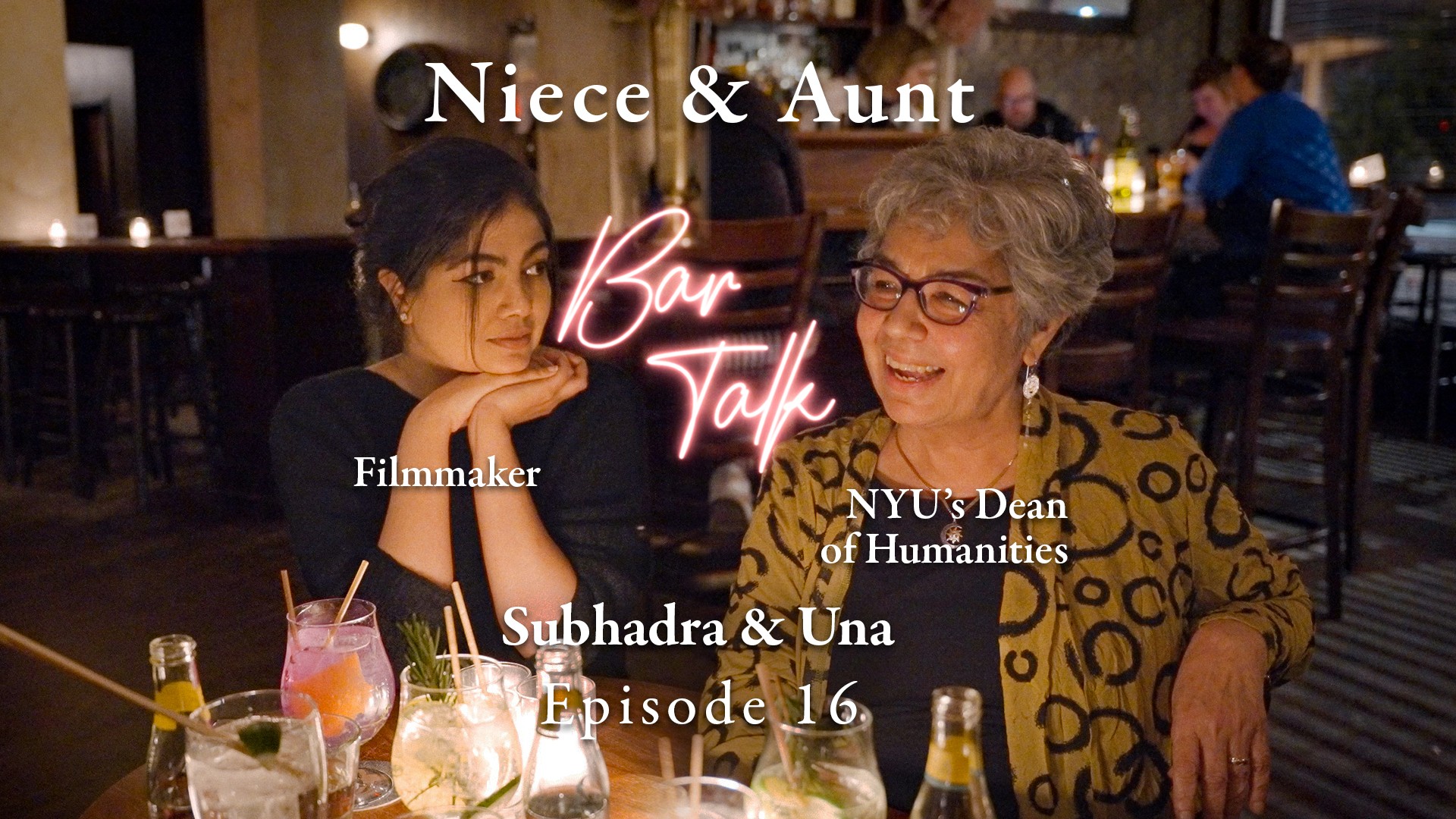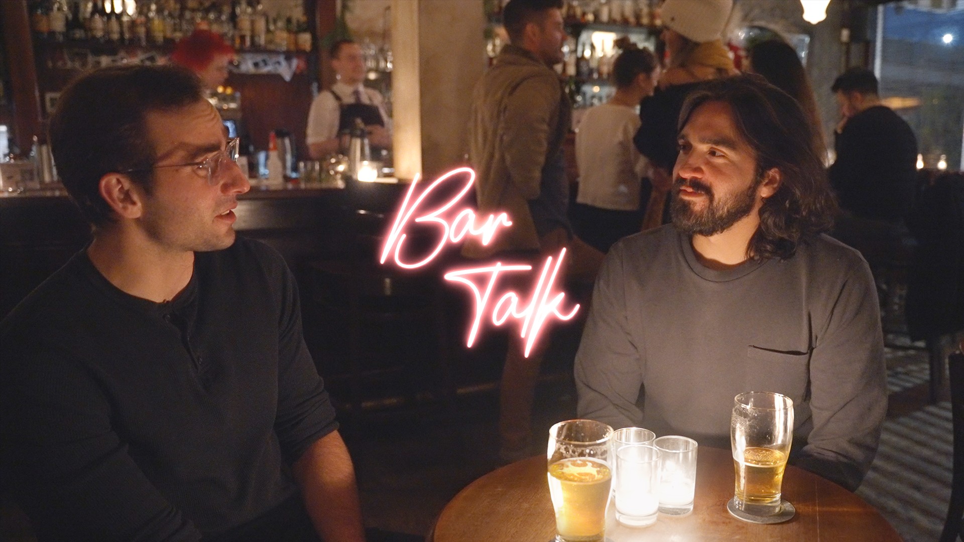 Bar Talk is a docuseries of unscripted conversations between everyday New Yorkers. Each week, we invite a new pair of friends to sit down at the bar and have a chat like they normally would on a night out. The aim, over the course of the show, is to create a portrait of the city through all its walks of life, in a casual tone.