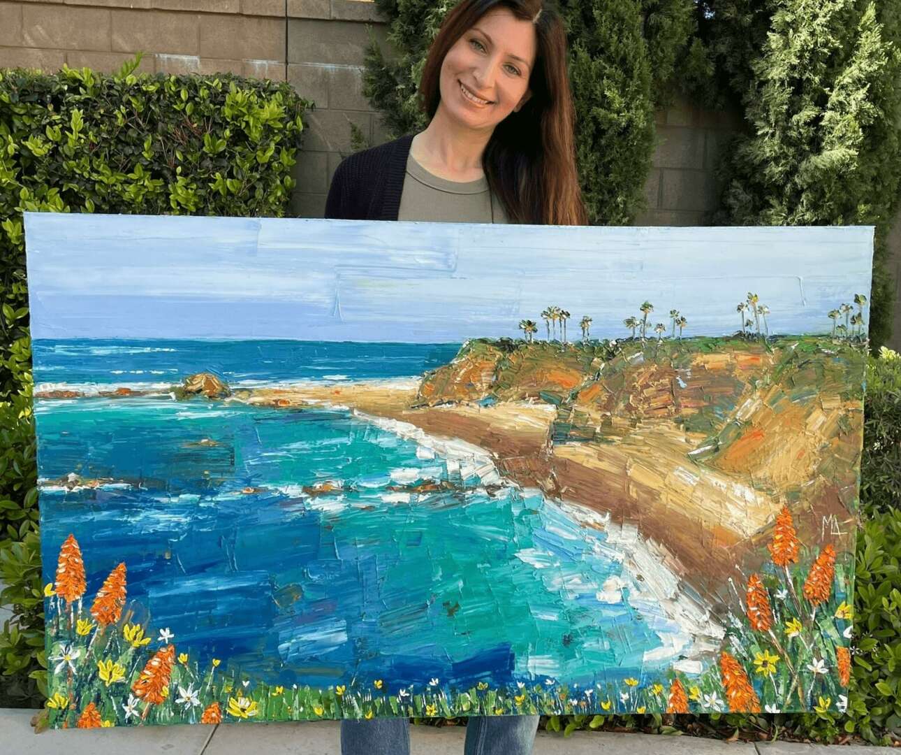 However, everything changed when I moved to California with my family in 2016. The state’s breathtaking landscapes, majestic Pacific Ocean, and radiant sunshine reignited my passion for art. I find endless inspiration in nature, and some of my favorite places to paint are Laguna Beach, Crystal Cove, and Santa Barbara.