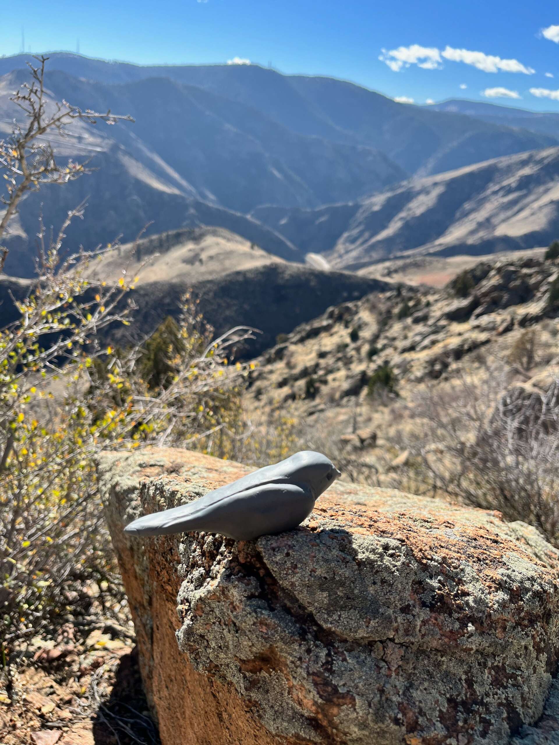 I have made thousands of birds in my past three decades as an artist, I have sold them and given them away as gifts. These birds were different These birds contained my sorrow and my grief. These were birds I needed to release. So I decided to take them on my hikes and place them out in nature. knowing that the clay would slowly disintegrate and go back to the earth from which it came.