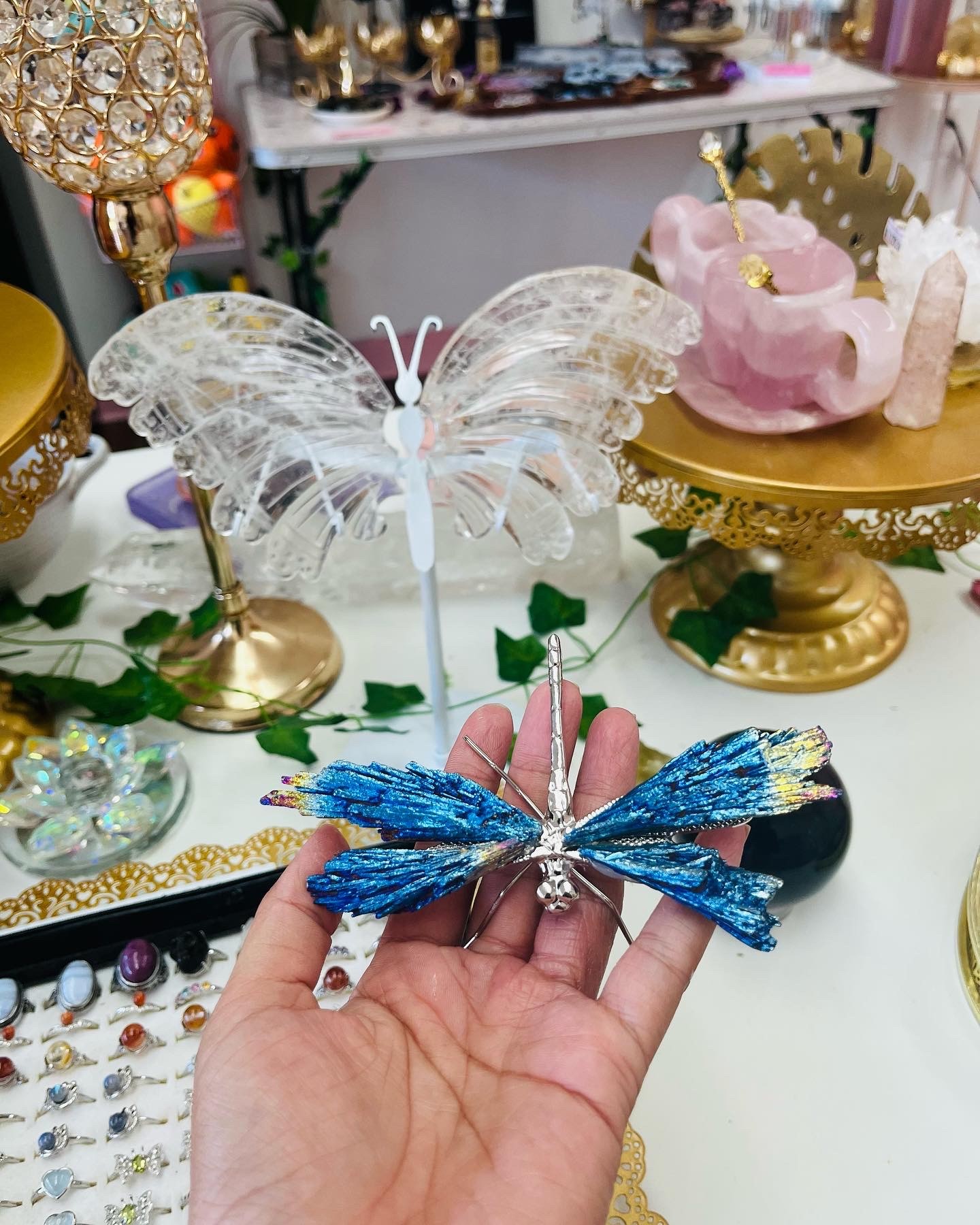 One day we were looking for a store to lease for my husband’s new sneaker buy sell trade business and there was a vacant spot in the same plaza that had soo much potential. My husband recommended me trying to open my crystal shop in there since packing, setting up, & hauling the crystals everywhere was a lot of work (& we had two toddlers at home that also needed a lot of attention). I thought that by opening a store, people can come to me and I can have an office set up in the back to watch the kids as well. Everything just made a lot of sense and when we put the numbers together we were able to get the lease for just under $1000 a month which is RARE in 2022!