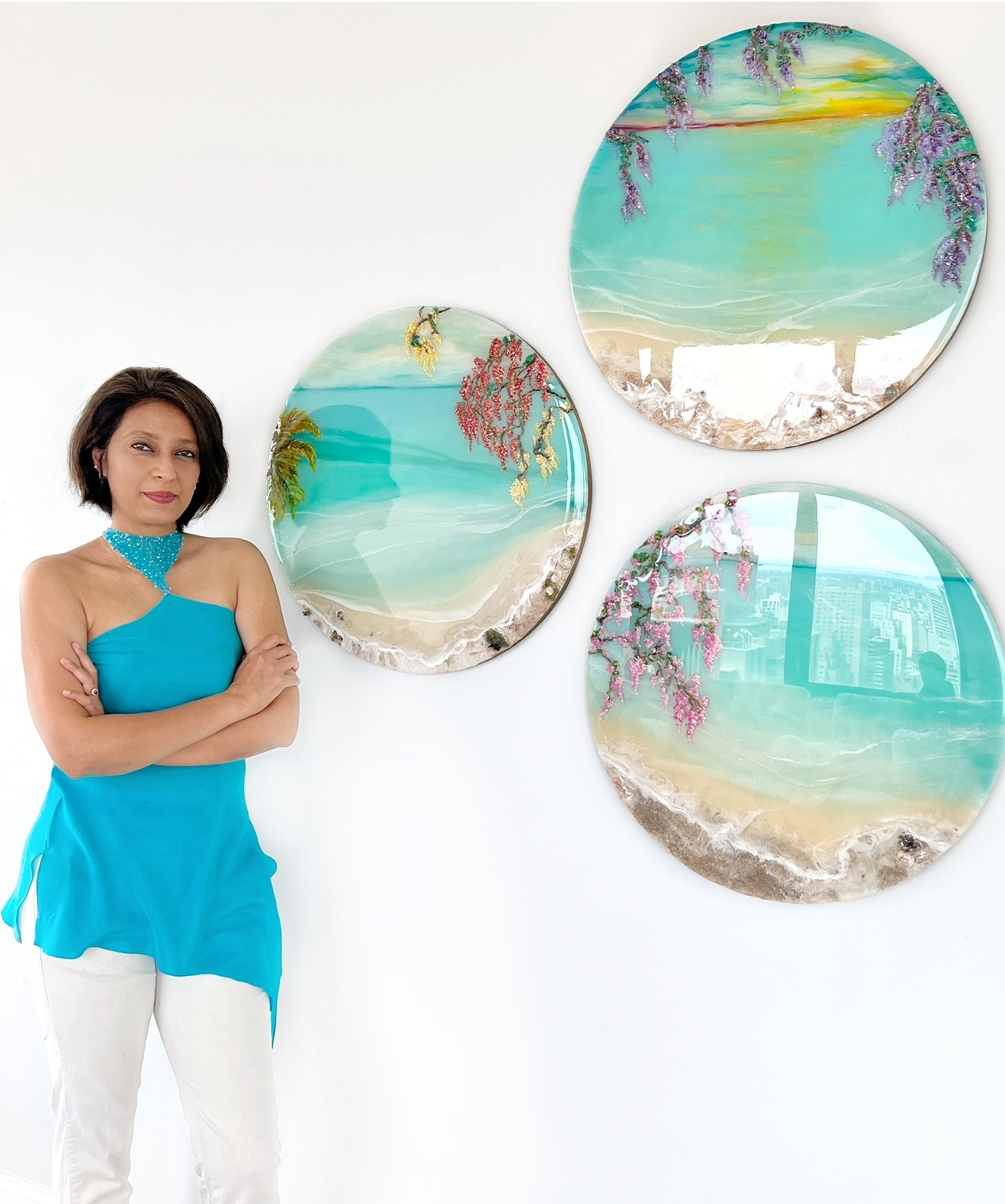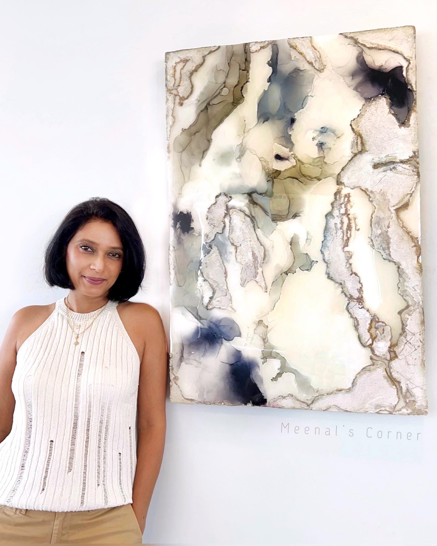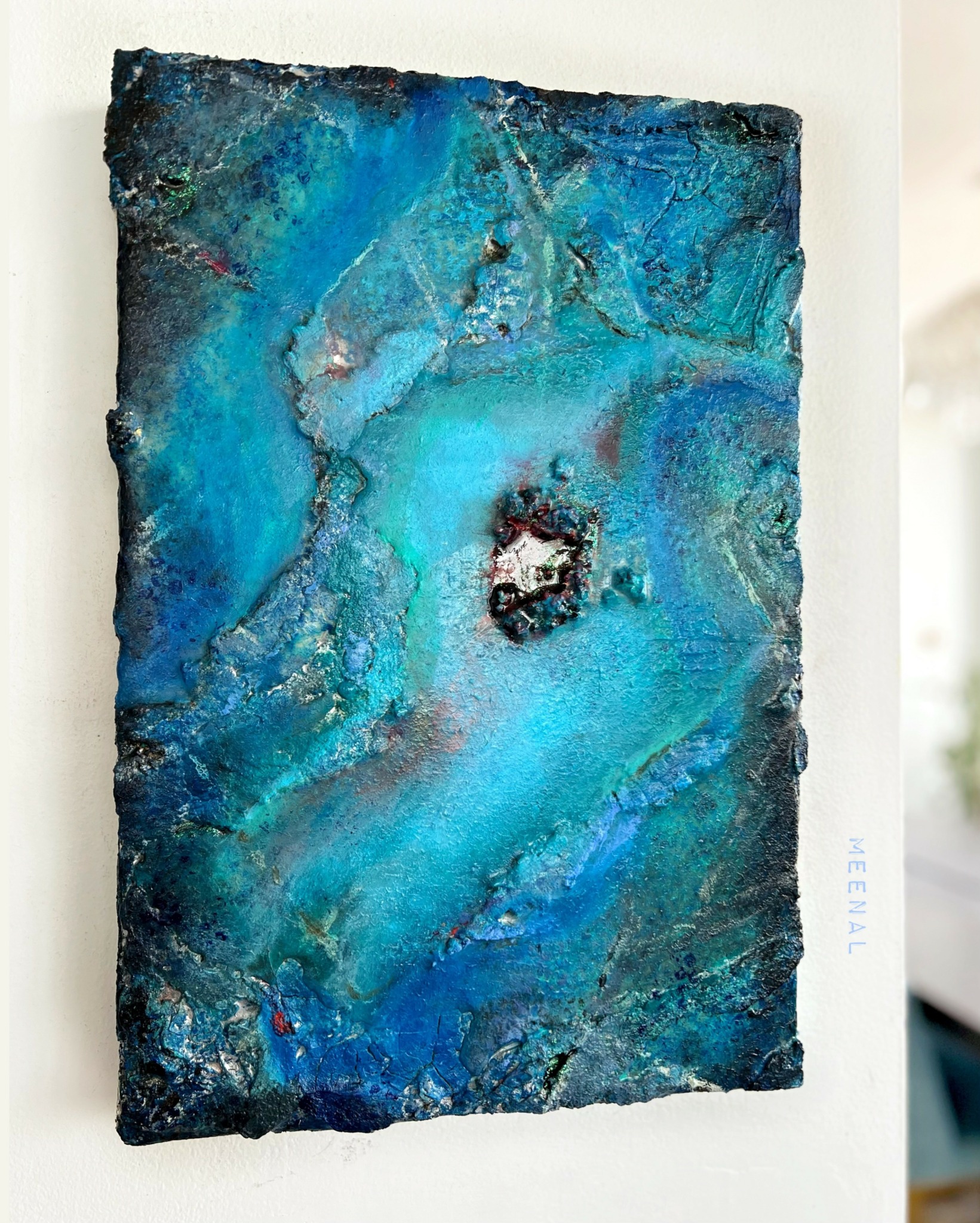 I’ve painted abstract and figurative art for friends and family for as long as I can remember; but my professional journey started in the fall of 2019 with an interesting medium that was all over Instagram then – epoxy resin. I started sharing abstract sea scapes with epoxy as the primary medium, and my Instagram blew up. It was fluid art since I was not painting with brushes but creating art by pouring, and manipulating colors, micas, sand, stones mixed with resin.