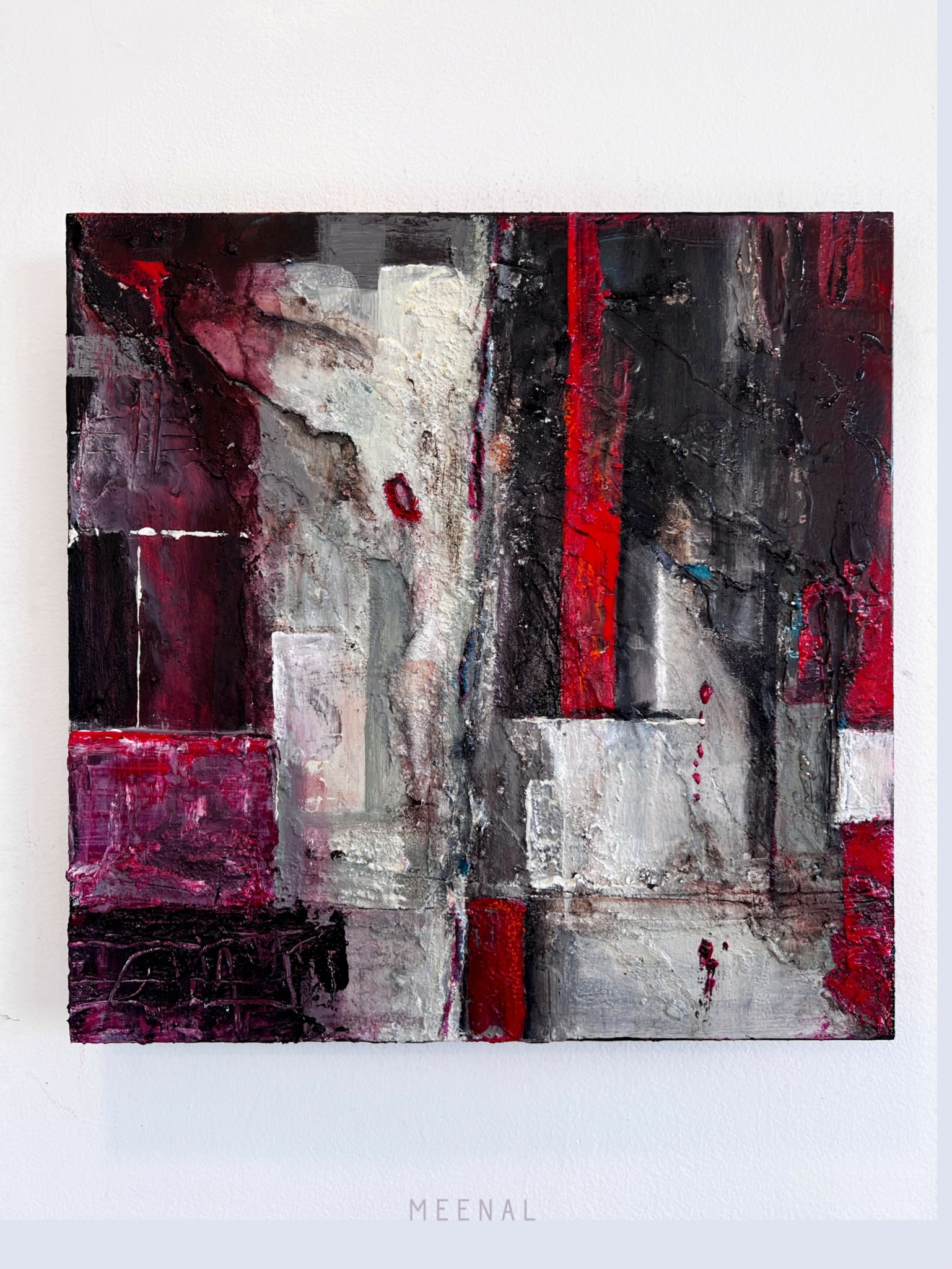 For the last two years, I’ve turned inward to focus on expressing my spiritual journey, and unpacking my heritage through my work. Working currently with acrylics, and experimental mixed media techniques, I consider my art a form of storytelling, with textures, composition and colors as crucial narratives. Deeply influenced by South Asian folk art forms and abstract expressionism, my newer work seeks to evoke emotion by operating in saturated chromatic fields juxtaposed against structured surfaces and contemporary compositions, all working simultaneously in a deeply personal space – my eastern roots and western sensibilities.