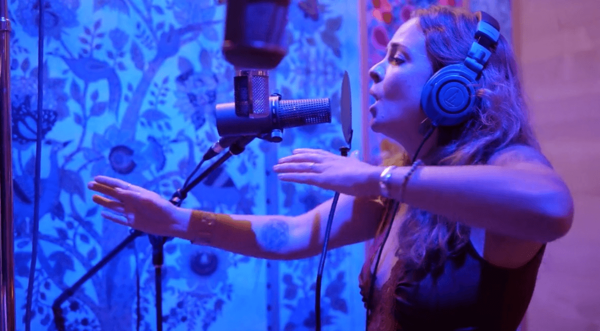 Photo 4: Me in the vocal booth at Sonic Ranch Studios, 2023-Photo Credit: Alan Esparza