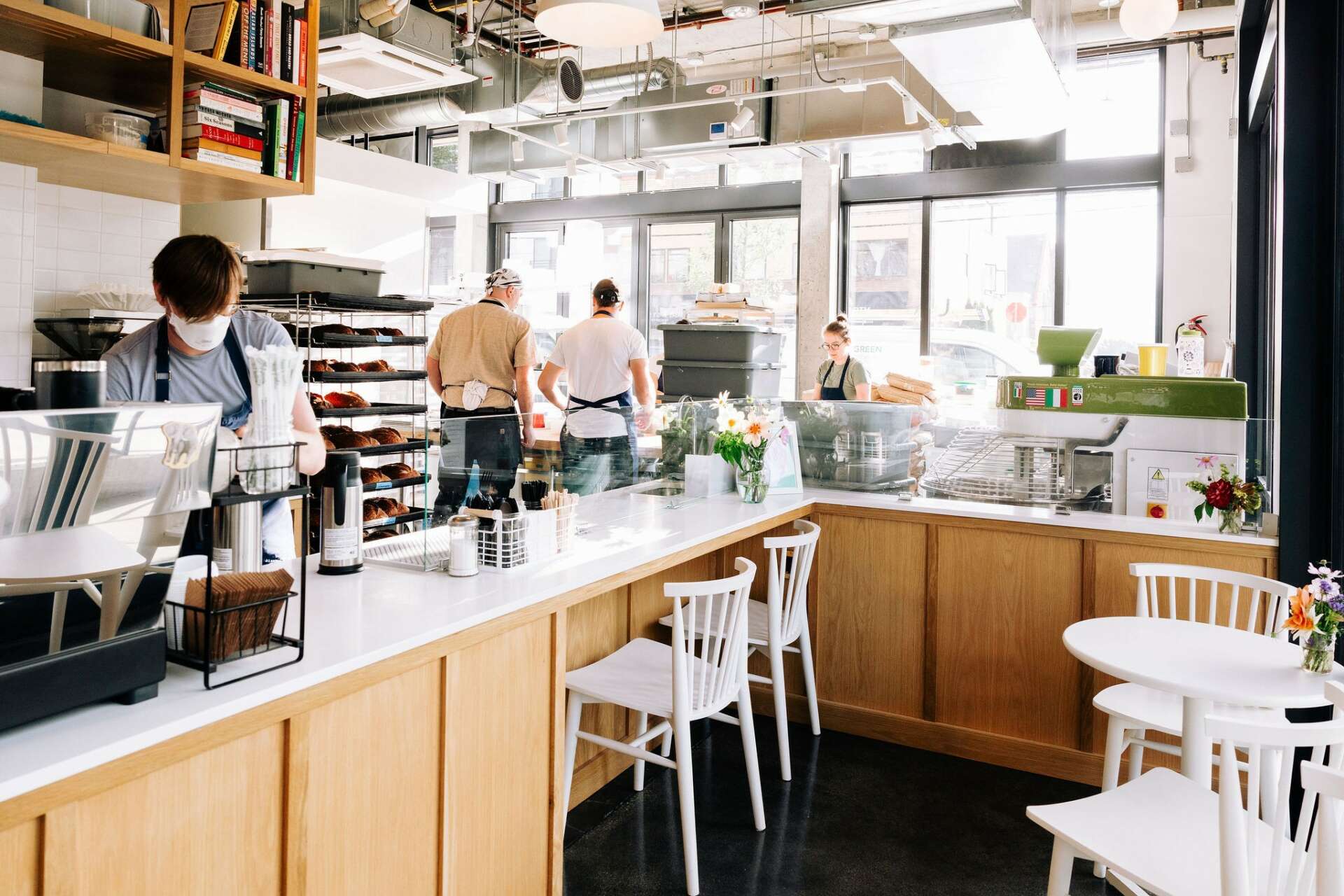 Our bakery space is a continuation of our emphasis on supporting our community and having them feel welcome. The layout allows foot traffic to look directly into the bakery and customers coming into the space are literally inside the bakery kitchen itself! We want people to see the ingredients that go into their food, know where it comes from, who grew it, and who processed and baked it, and feel like they have a real relationship to the end product.