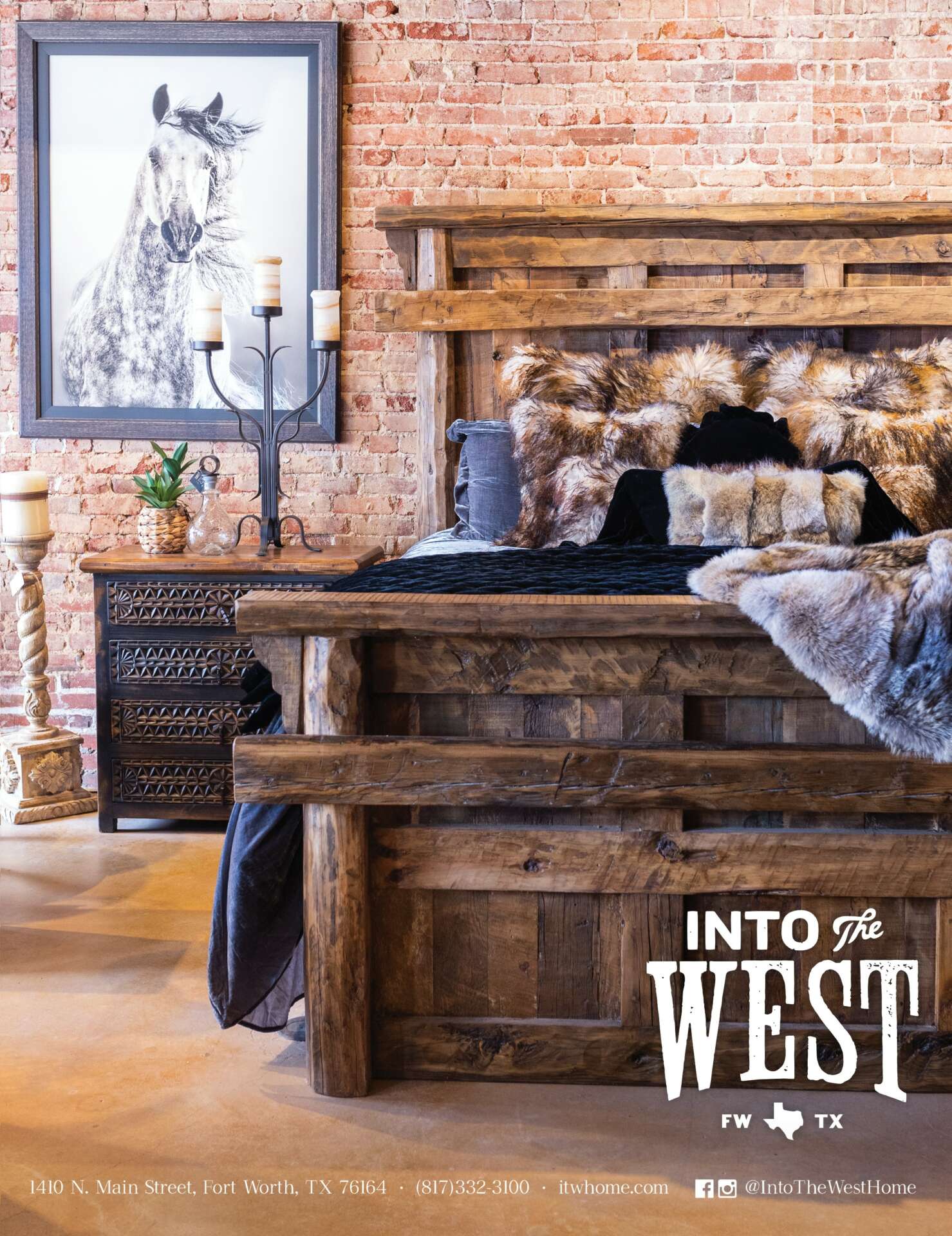 Deep in the heart of Fort Worth, Into the West offers a legacy of custom, handmade furniture and accessories, styled to your specifications. Or, purchase our showroom pieces for quick white-glove delivery to your home, ranch house, or corporate office.