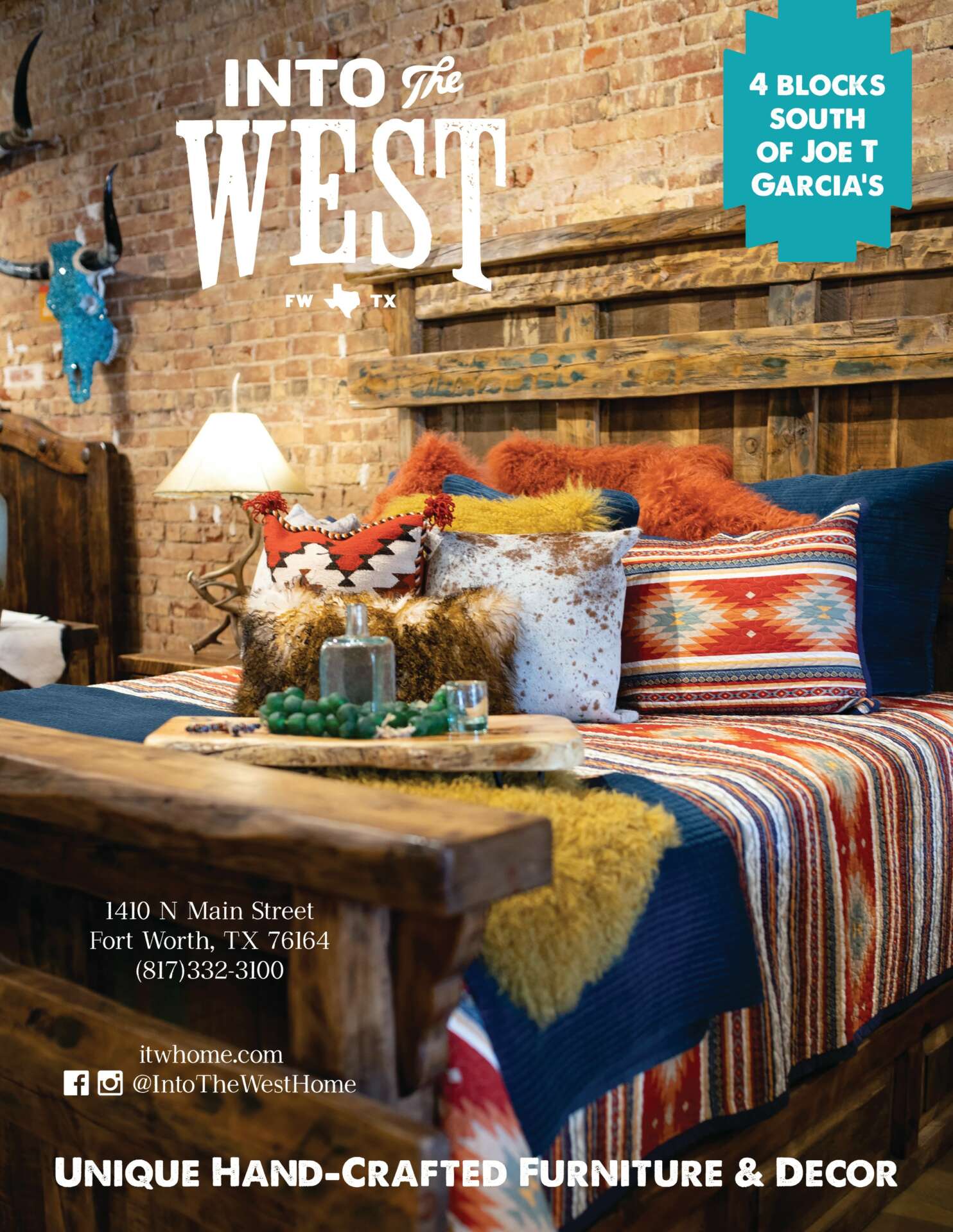 Deep in the heart of Fort Worth, Into the West offers a legacy of custom, handmade furniture and accessories, styled to your specifications. Or, purchase our showroom pieces for quick white-glove delivery to your home, ranch house, or corporate office.