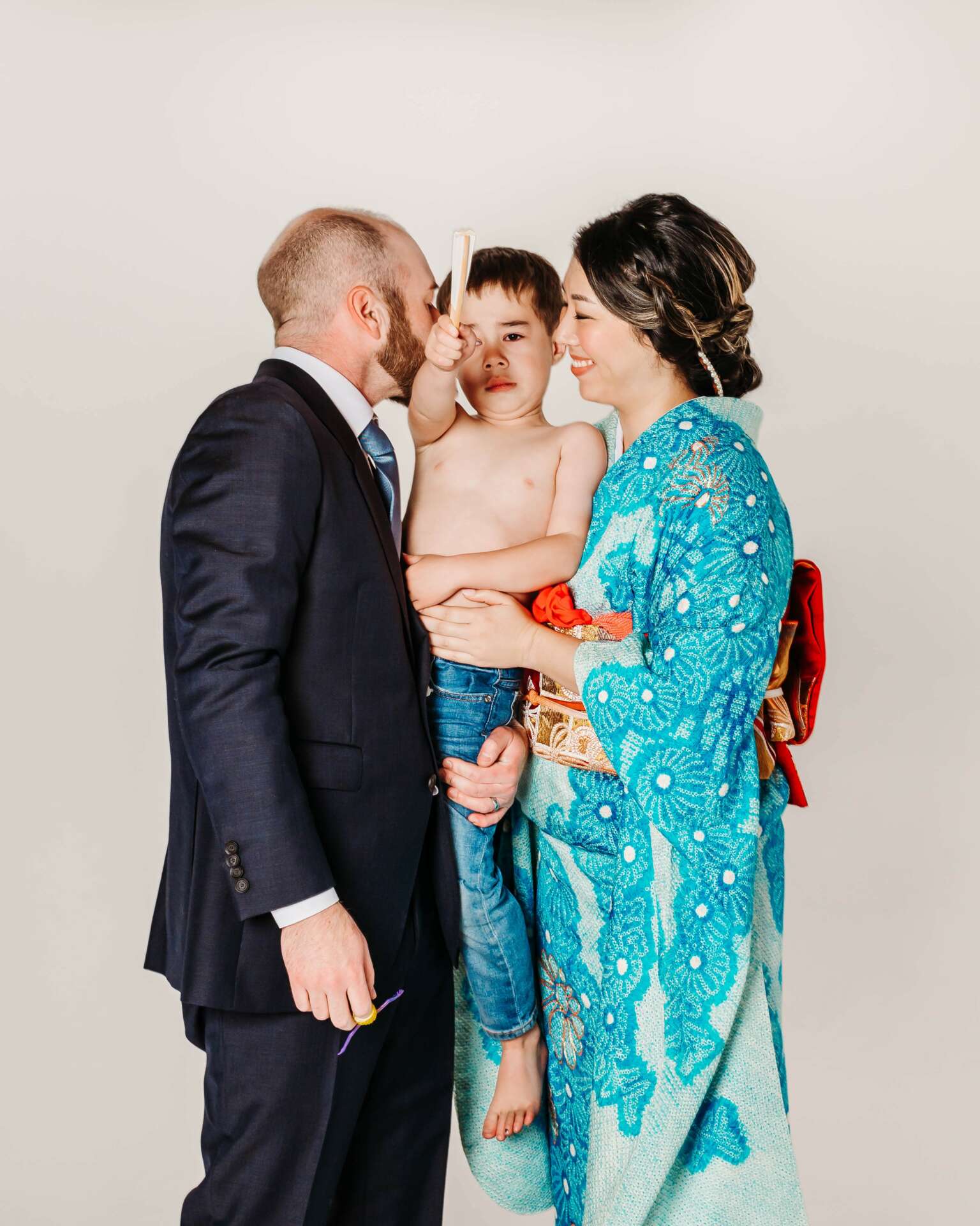 However, as many parents with young children may know, things don’t always go as planned. The kids were not cooperating and didn’t want to wear their kimonos. I felt terrible for my client because everything else was perfect, but the kids were not on board. This could have been a disastrous photo shoot story, but Amie and her husband remained positive and calm.