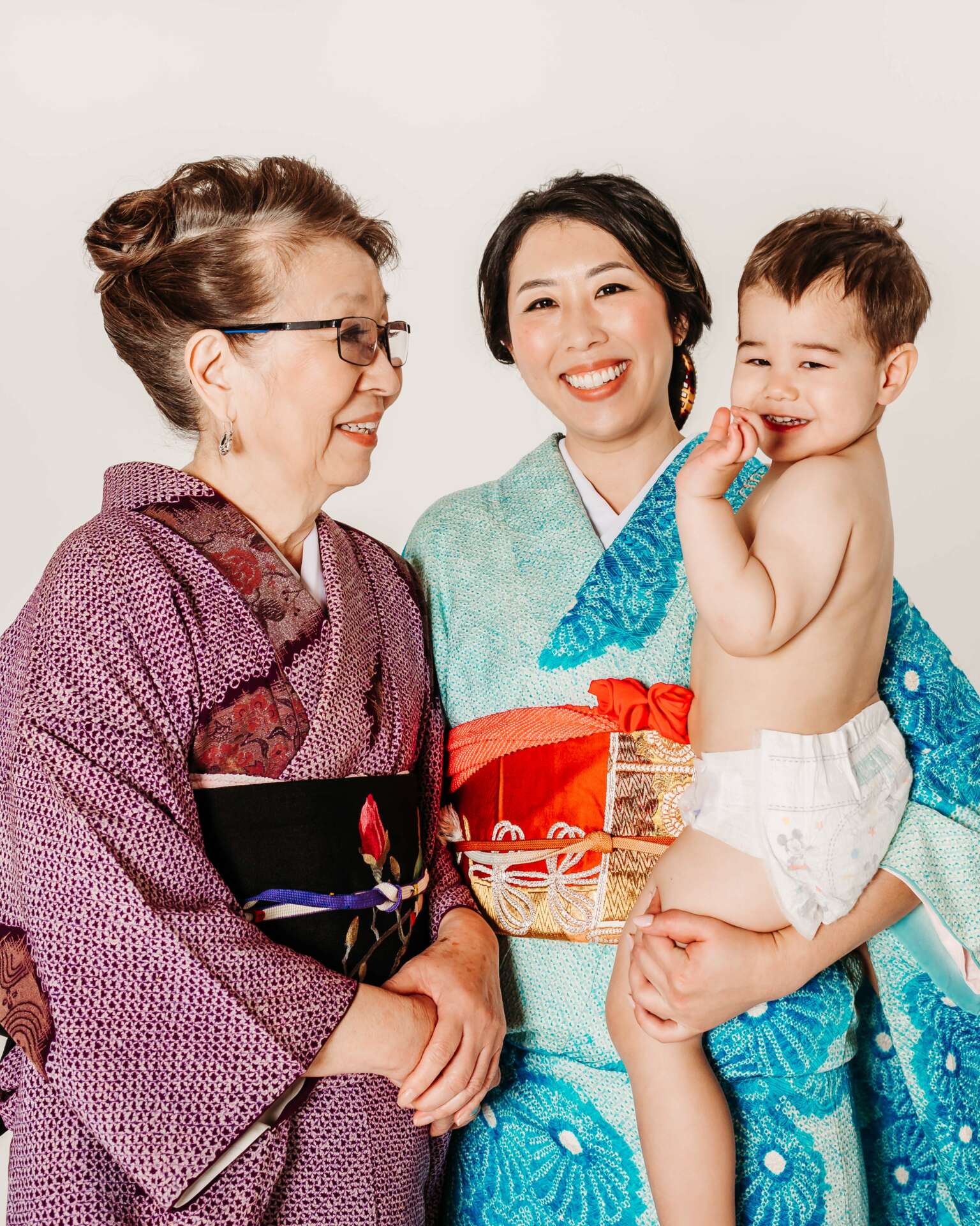 When I received an inquiry from Amie, a Japanese American mom of 2 little boys, to photograph her family’s portraits in traditional Japanese kimonos, I was so excited. Amie was going to wear her mother’s vintage kimono, the dad was matching her kimono color with his suit and tie, her little boys were going to be dressed up in Hakama style, and even the grandma was going to join in on the photo session. I was extremely thrilled! We had planned this for months in advance to ensure everything went perfectly.