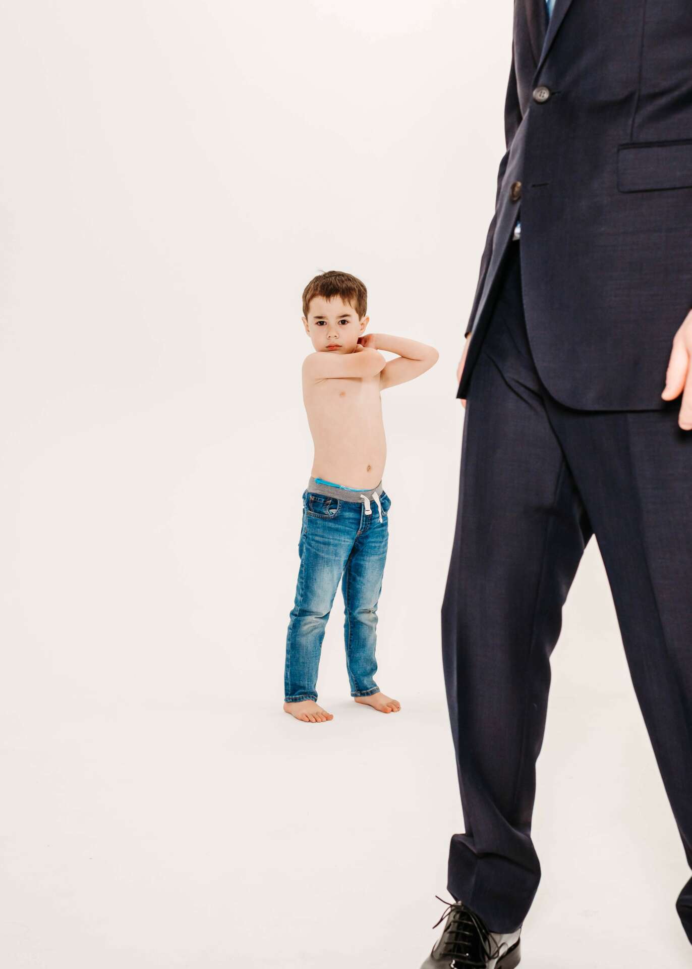 As a family photographer who specialized in capturing kids’ authenticity, I actually LOVE capturing these crazy childhood moments! That’s my jam! And my awesome clients understood it, too. We decided to make the most of the situation and have fun with the shoot. I suggested some playful poses, like the mom doing an “airplane” with her little boy in his diaper. Despite the stress, my clients embraced the moment and had fun with it. My kids are older now and I knew how precious those moments can be, even if they don’t go according to plan.
