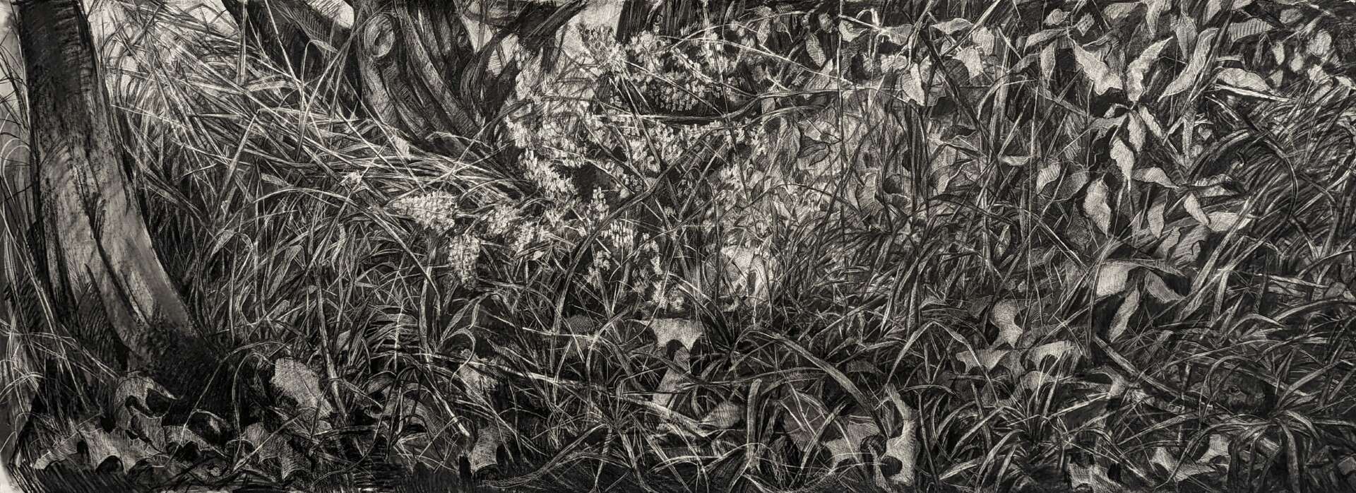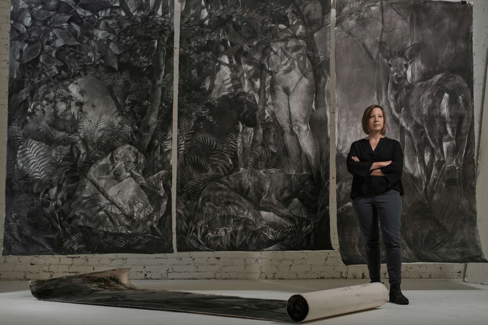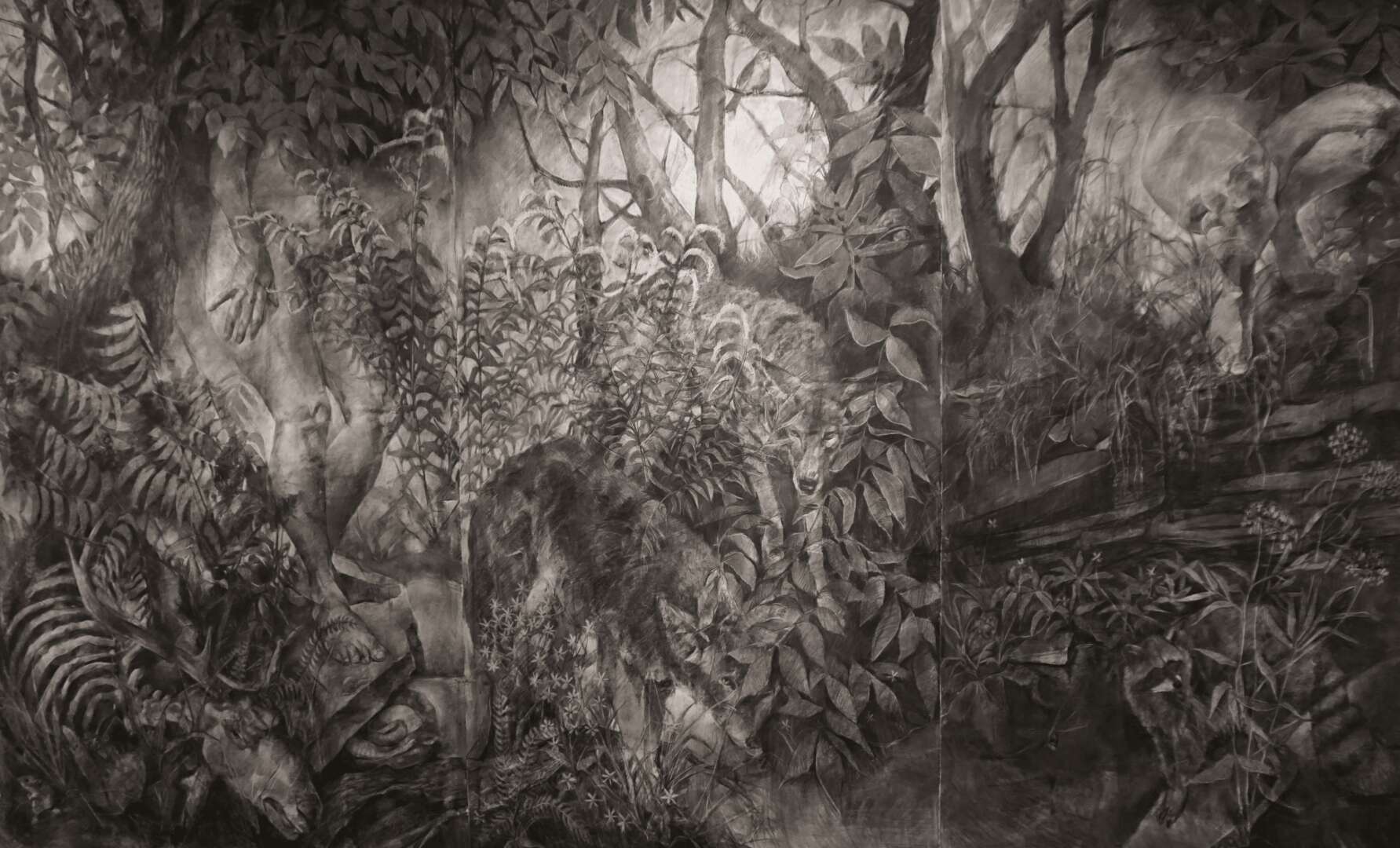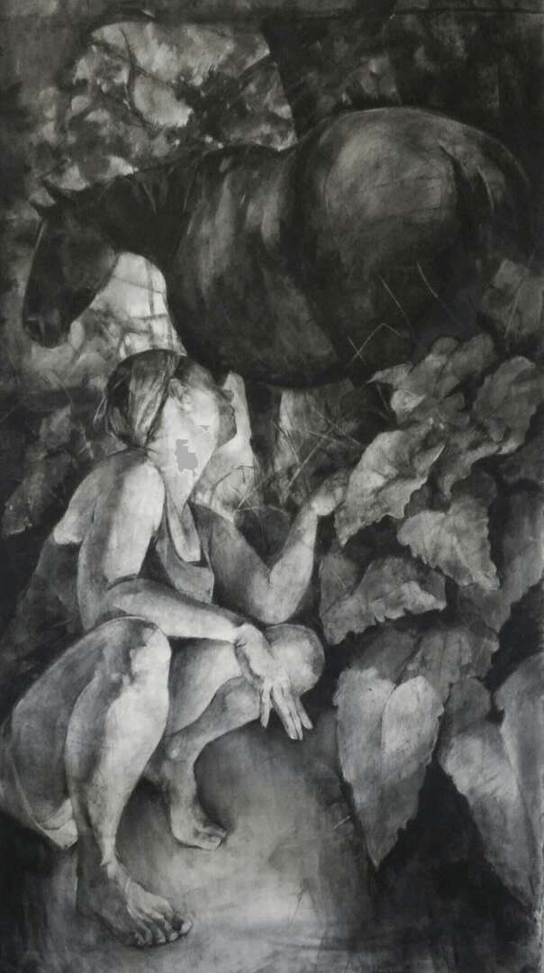 I am an artist and educator based in Prairie Village, KS. I’m originally from Kansas City, and grew up helping in my dad’s veterinary practice, exploring in the woods, and riding horses. My large scale drawings recall the sensory and emotional connections inherent in my bonds with animals and the natural landscape, and the ways in which animals provide some of my earliest empathetic relationships and routine caregiving experiences. Examining these formative bonds has caused me to explore the physical and psychological landscapes connected to the life cycles of animals, much like I did as a kid, and my work has taken me to artist residencies on the Tallgrass Prairie and deep into my own backyard. I’m a mom to a teenager, and we live with a menagerie of dogs, cats, chickens and a rabbit (all make appearances in my drawings now and then). I’ve worked at the University of Central Missouri for quite a while, and my students and colleagues continue to have a huge positive impact on my creative practice.