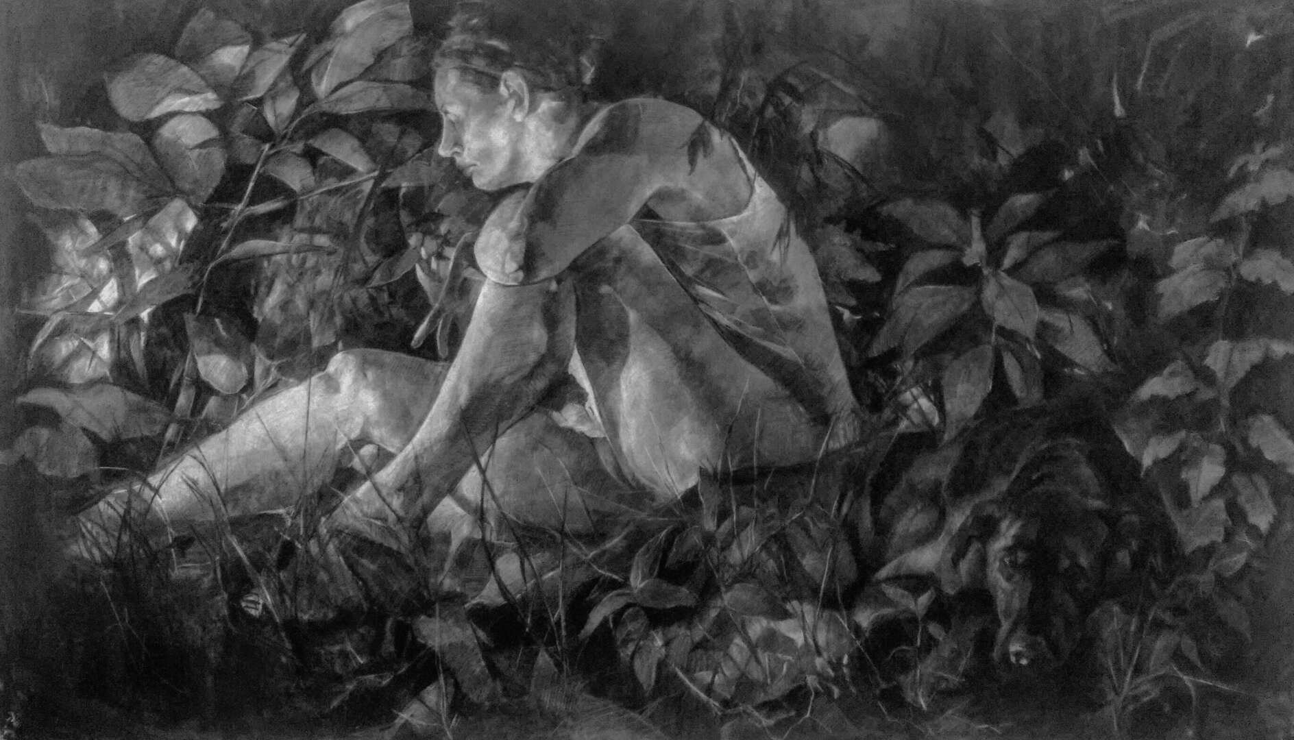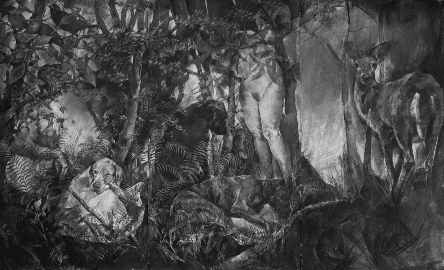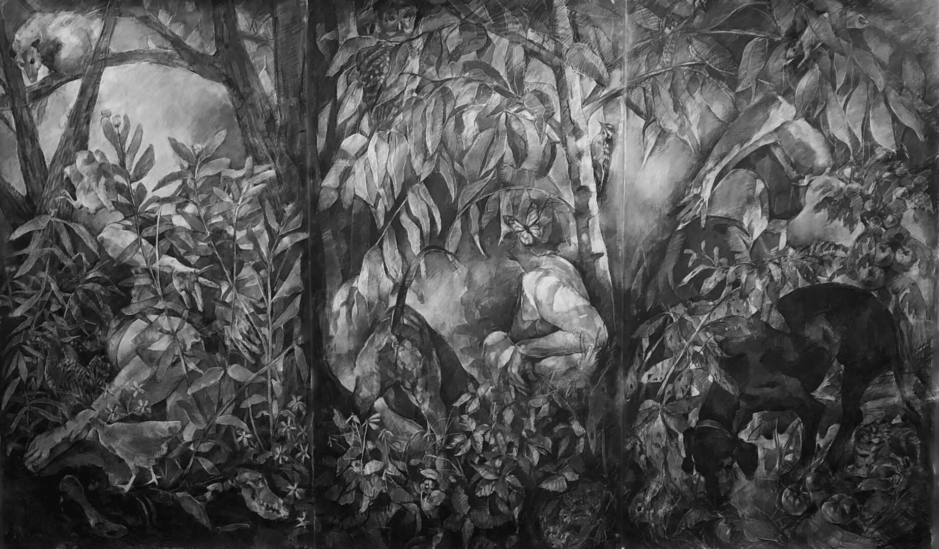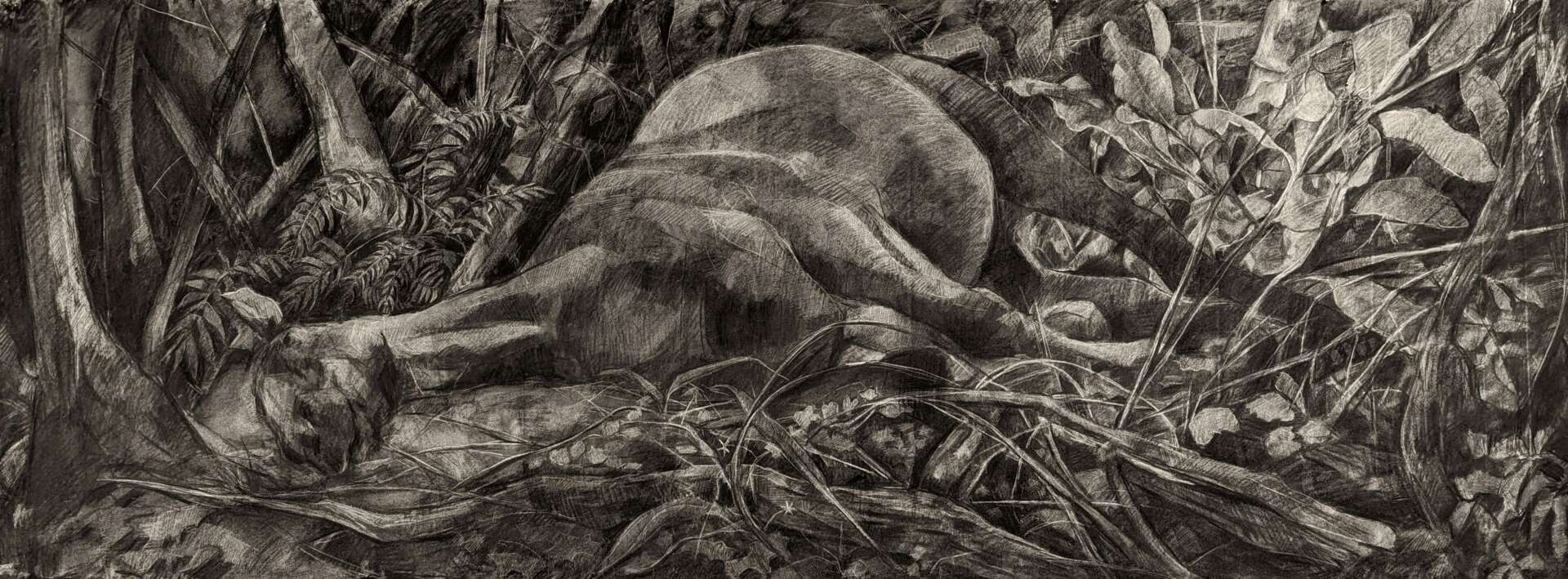 I am an artist and educator based in Prairie Village, KS. I’m originally from Kansas City, and grew up helping in my dad’s veterinary practice, exploring in the woods, and riding horses. My large scale drawings recall the sensory and emotional connections inherent in my bonds with animals and the natural landscape, and the ways in which animals provide some of my earliest empathetic relationships and routine caregiving experiences. Examining these formative bonds has caused me to explore the physical and psychological landscapes connected to the life cycles of animals, much like I did as a kid, and my work has taken me to artist residencies on the Tallgrass Prairie and deep into my own backyard. I’m a mom to a teenager, and we live with a menagerie of dogs, cats, chickens and a rabbit (all make appearances in my drawings now and then). I’ve worked at the University of Central Missouri for quite a while, and my students and colleagues continue to have a huge positive impact on my creative practice.