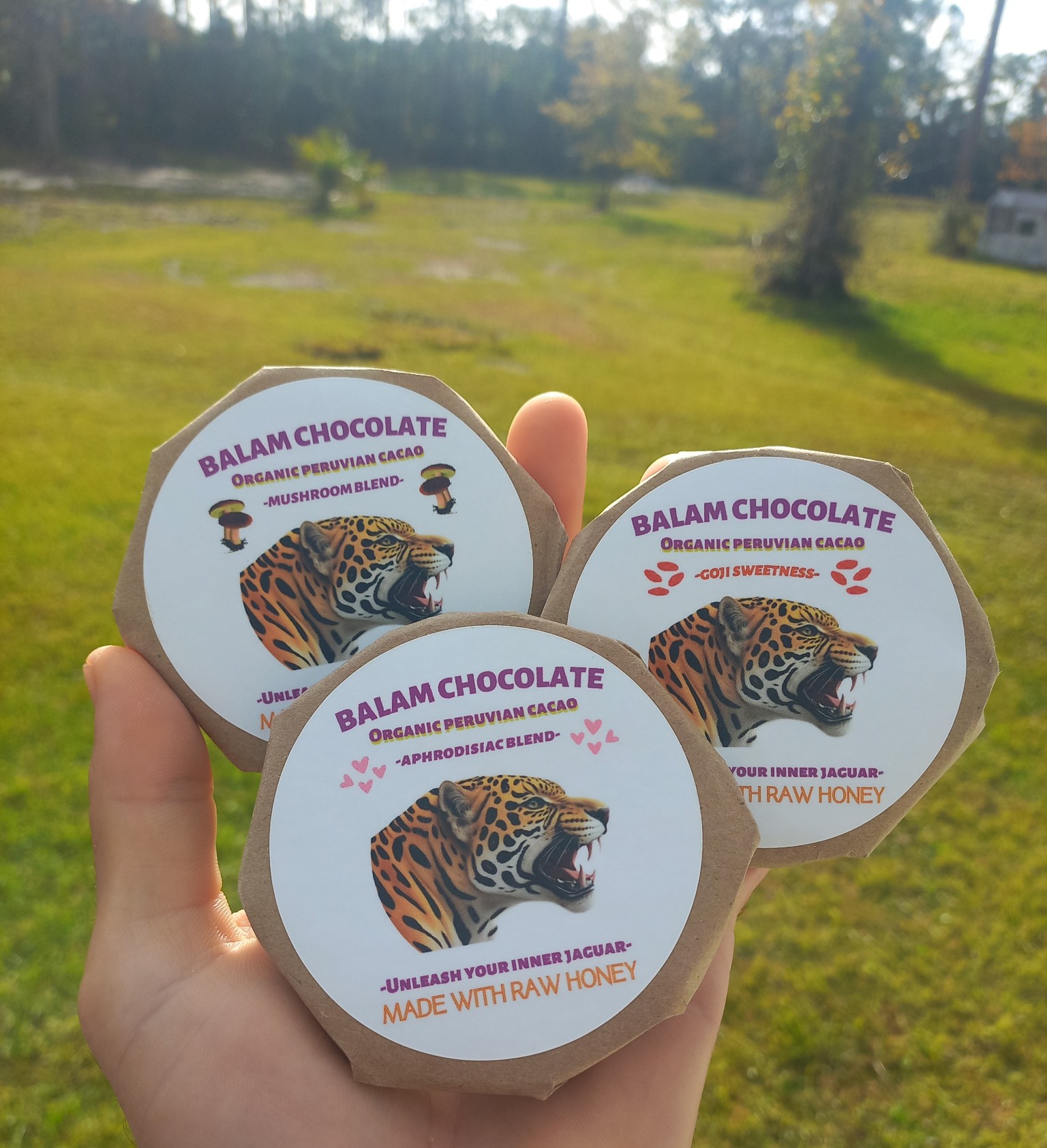 I started making chocolate by simply melting a block of Cacao, some Cacao butter, and adding other ingredients like almonds, honey, mushroom powder, maca, etc. I wanted to make myself something healthy and not too sweet with processed sugars or preservatives to enjoy and help me throughout my menstrual cycle. It was my go to treat and was helping me stay in a good mood, have more energy, and I was cramping less. I was inspired to share it with my family members during the holidays..I thought great, here’s something healthy & delicious..plus, who doesn’t love chocolate?! It was impacting my life in the best ways. After continuously studying holistic healing and herbal remedies, I started learning about adaptogens..which are a group of plants/mushrooms/herbs/roots that help combat stress. I noticed I was already mixing some into my chocolates and noticed a good difference. With so many things in the world causing stress, it does help to incorporate adaptogens into our lifestyle. It was always difficult for me to find a healthy/clean ingredient chocolate..so I wanted to offer that. I would love to see people correlate chocolate with good health because it sure does support overall wellness. One of my power animals and spirit guides is the Jaguar..with Balam being an ancient Maya word for Jaguar..I felt the name suited the chocolate. It helps me be strong, stay aware, and have good reflexes. The phrase “unleash your inner Jaguar” is like unleashing your inner Warrior and this Cacao/Chocolate helps me do that!