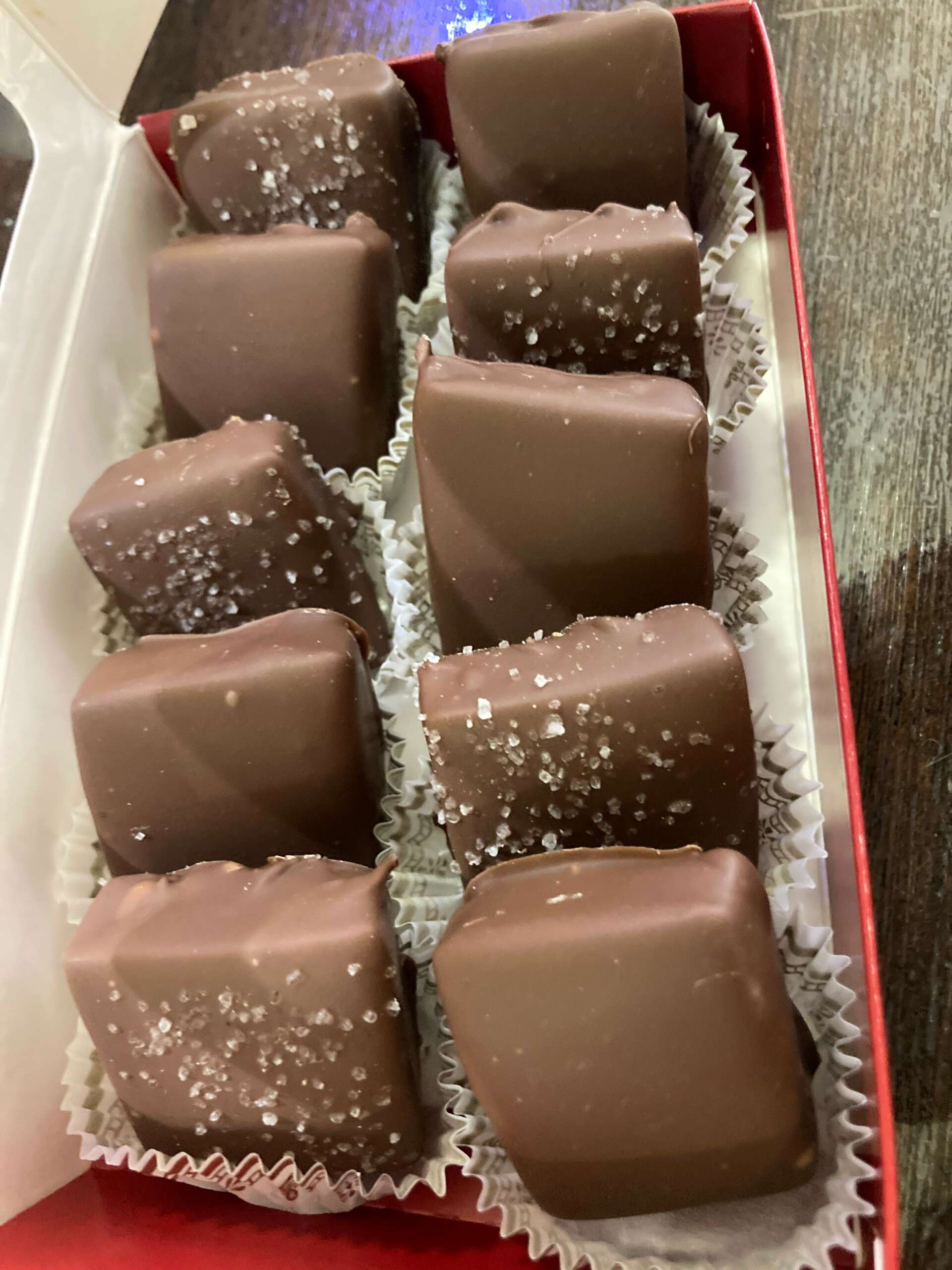 What I am most proud of is the love that we put into the chocolates we create. We bring our customers the best ingredients we can find. Our chocolate is fair trade certified which is extremely important to us no child labor is involved in the harvesting of the cacao beans. The nuts we use purchase are from a small family owned business in Wisconsin and are roasted and salted there. Our creams and caramel are made for us by another family owned company who makes it for us just before it is shipped.
